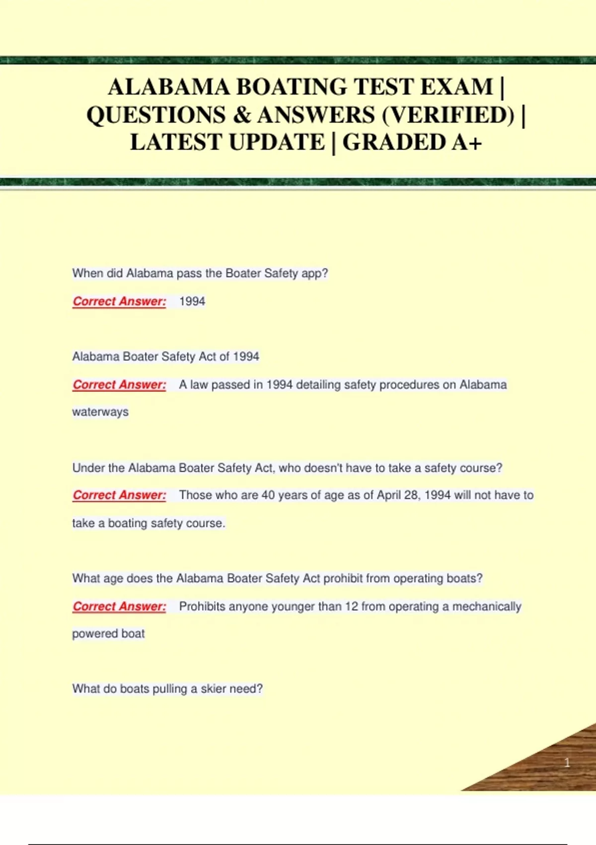 ALABAMA BOATING TEST EXAM | QUESTIONS & ANSWERS (VERIFIED) | LATEST UPDATE | GRADED A+ALABAMA BOATING TEST EXAM | QUESTIONS & ANSWERS (VERIFIED) | LATEST UPDATE | GRADED A+