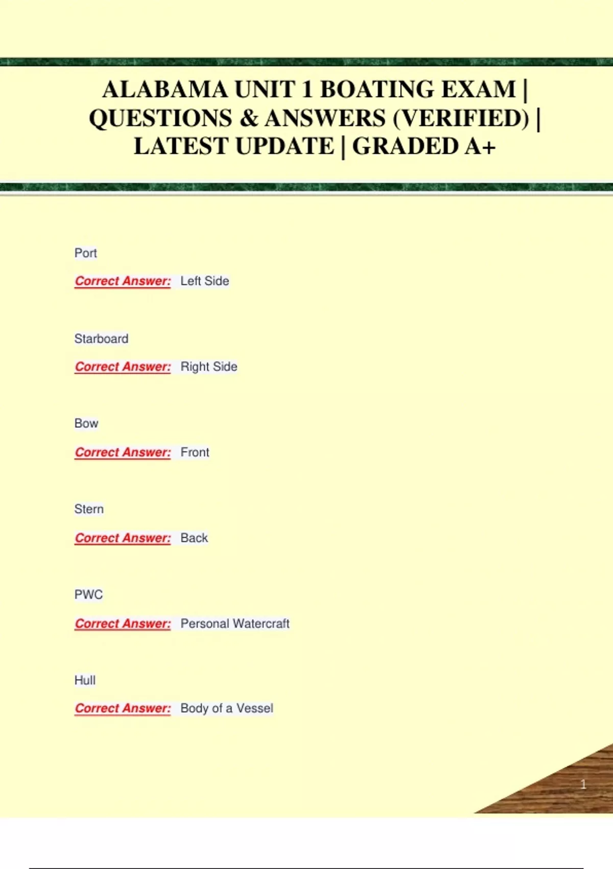 ALABAMA UNIT 1 BOATING EXAM | QUESTIONS & ANSWERS (VERIFIED) | LATEST UPDATE | GRADED A+ALABAMA UNIT 1 BOATING EXAM | QUESTIONS & ANSWERS (VERIFIED) | LATEST UPDATE | GRADED A+