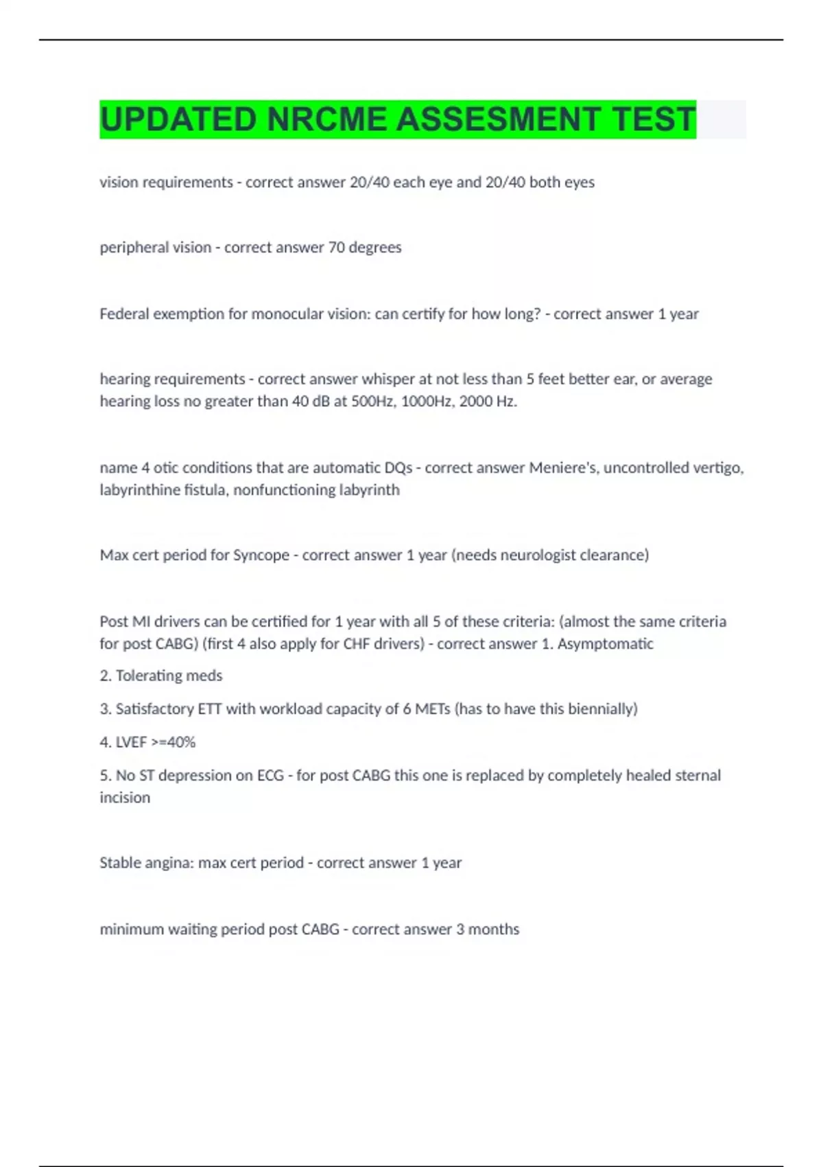 UPDATED NRCME ASSESMENT TEST