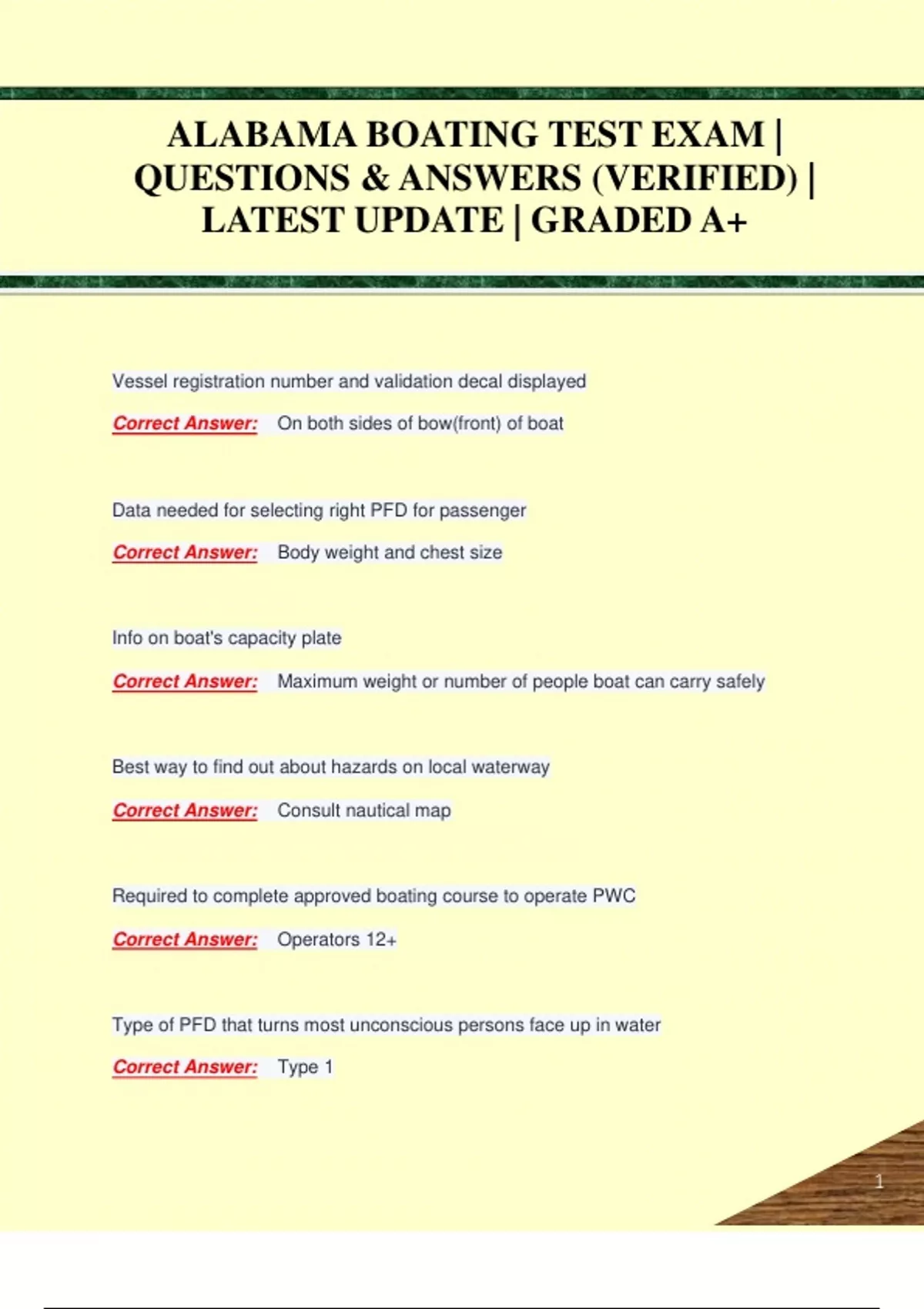 ALABAMA BOATING TEST EXAM | QUESTIONS & ANSWERS (VERIFIED) | LATEST UPDATE | GRADED A+ALABAMA BOATING TEST EXAM | QUESTIONS & ANSWERS (VERIFIED) | LATEST UPDATE | GRADED A+