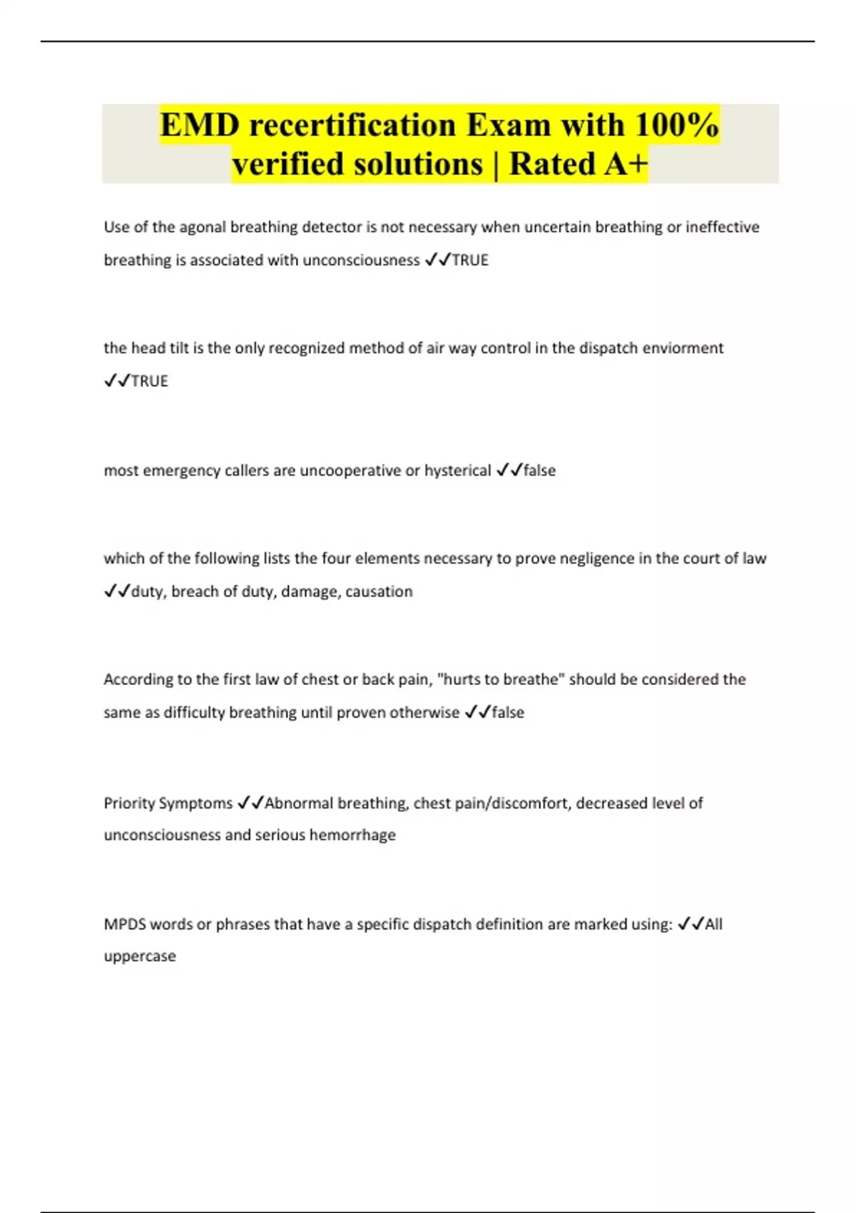 EMD recertification Exam with 100% verified solutions | Rated A+