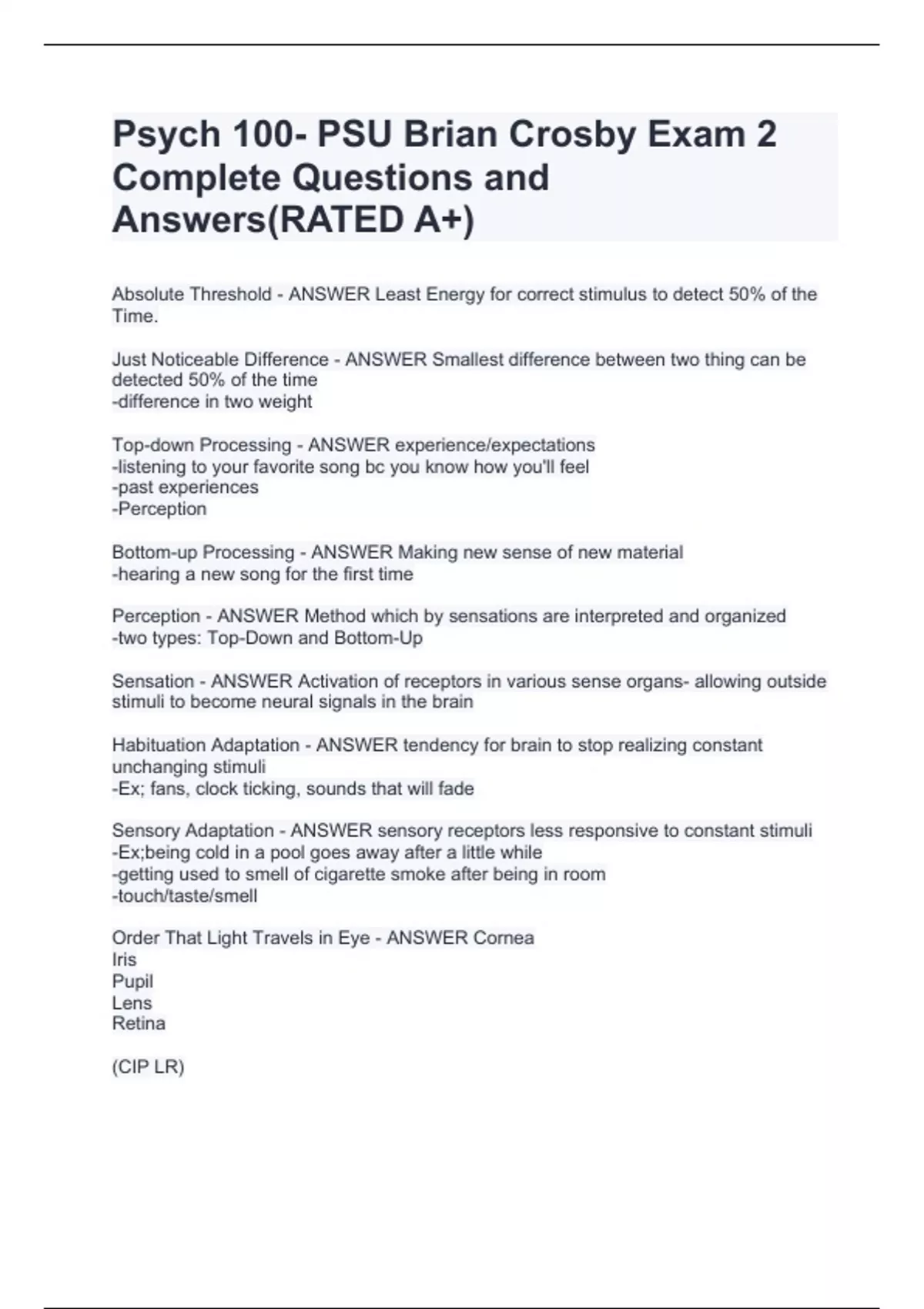Psych 100- PSU Brian Crosby Exam 2 Complete Questions and Answers(RATED A+)
