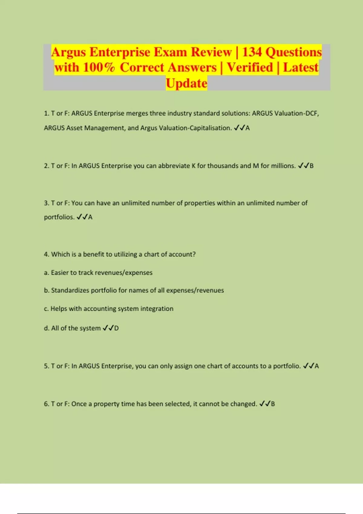Argus Enterprise Exam Review | 134 Questions with 100% Correct Answers | Verified | Latest Update