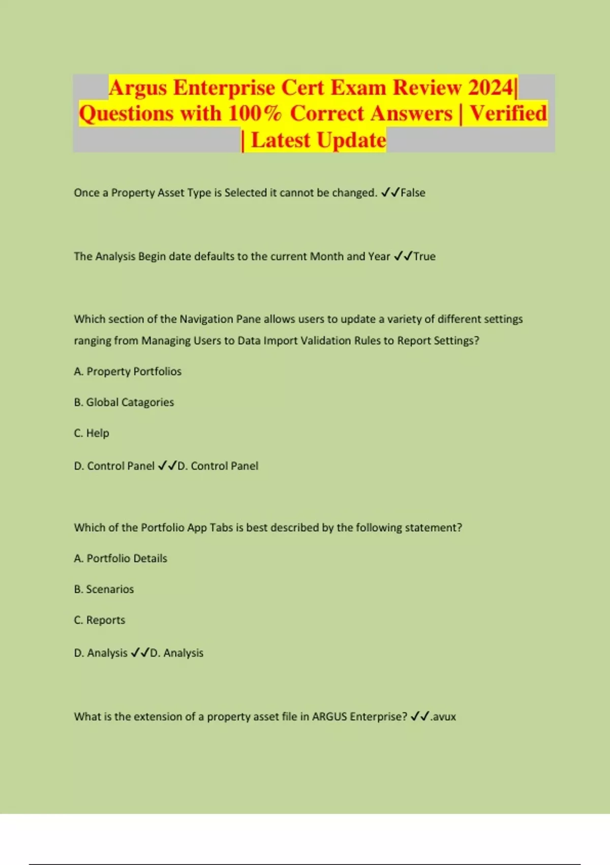 Argus Enterprise Cert Exam Review 2024| Questions with 100% Correct Answers | Verified | Latest Update