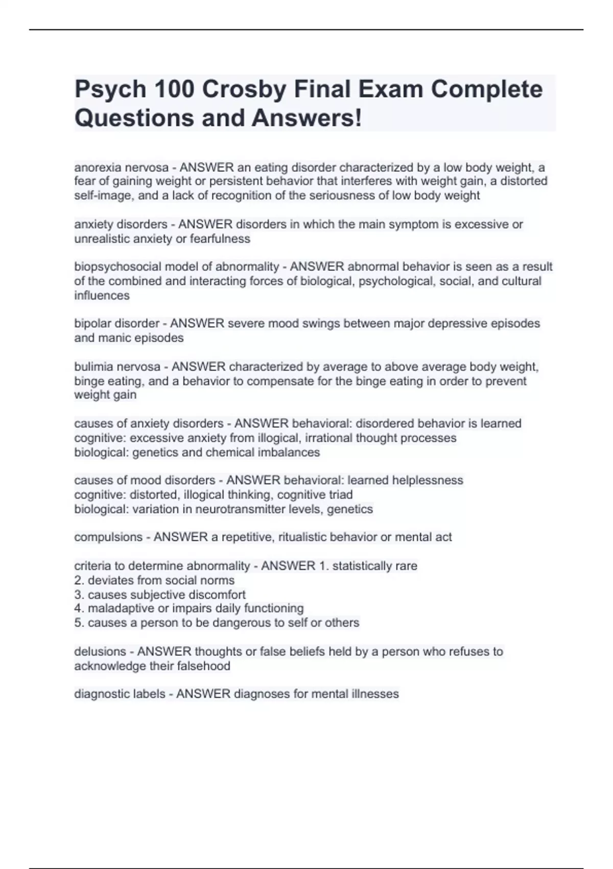 psych 100 crosby final exam complete questions and