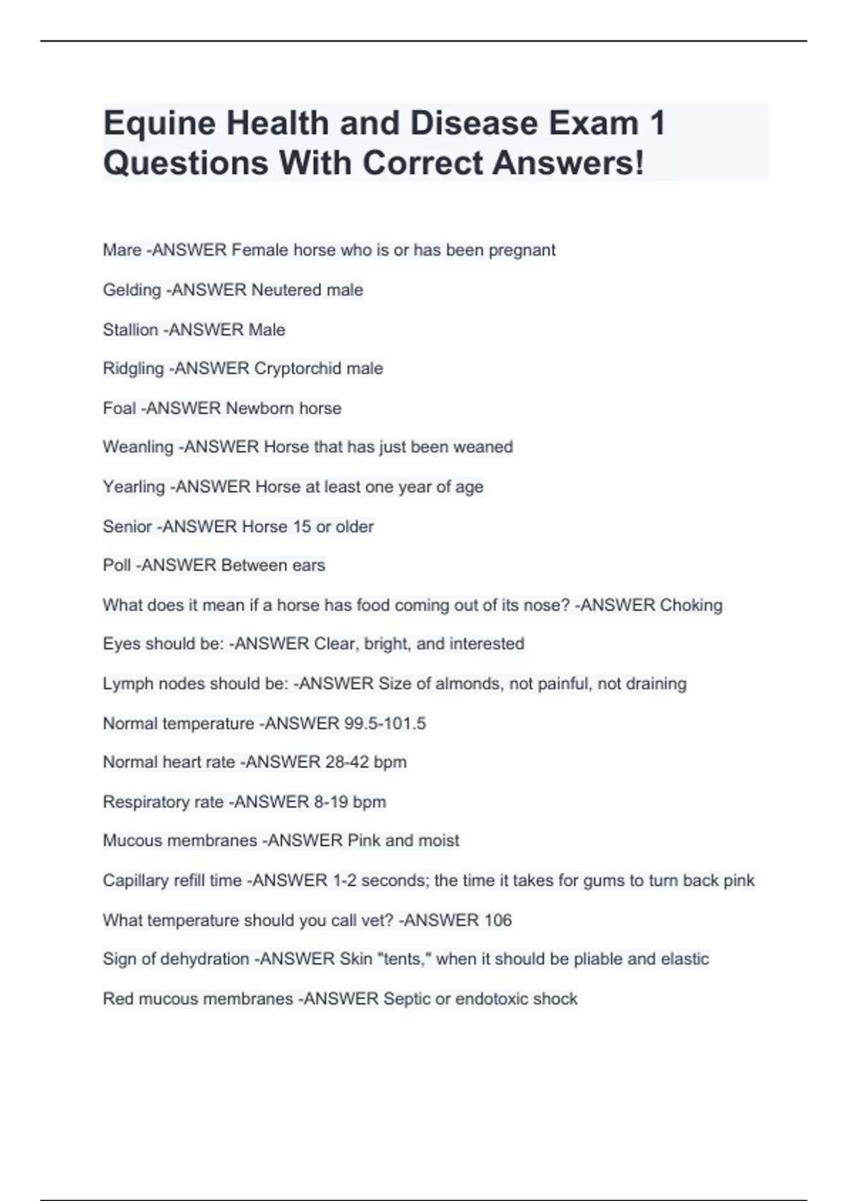 Equine Health and Disease Exam 1 Questions With Correct Answers! Equine Health and Disease Exam 1 Questions With Correct Answers! Equine Health and Disease Exam 1 Questions With Correct Answers! Equine Health and Disease Exam 1 Questions With Correct Answers! Equine Health and Disease Exam 1 Questions With Correct Answers! Equine Health and Disease Exam 1 Questions With Correct Answers! Equine Health and Disease Exam 1 Questions With Correct Answers! Equine Health and Disease Exam 1 Questions With Correct Answers! Equine Health and Disease Exam 1 Questions With Correct Answers! Equine Health and Disease Exam 1 Questions With Correct Answers!