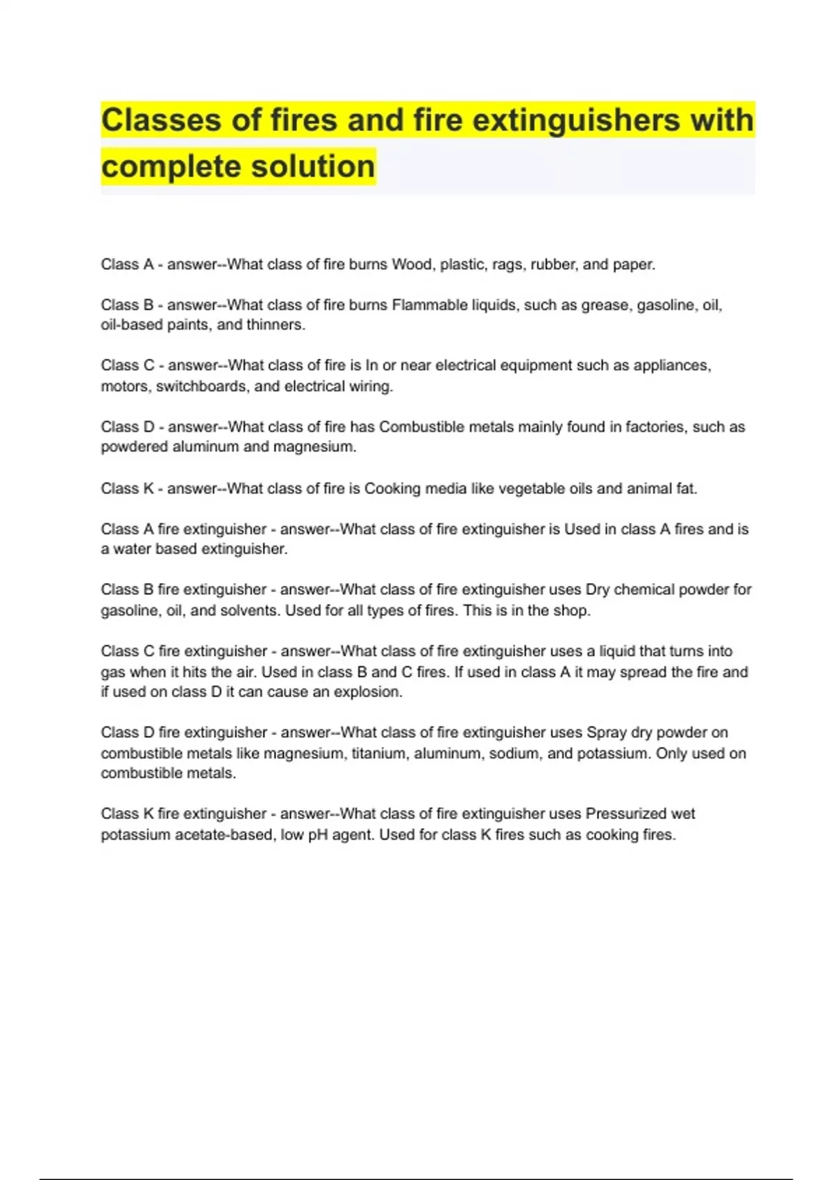 Classes of fires and fire extinguishers with complete solution