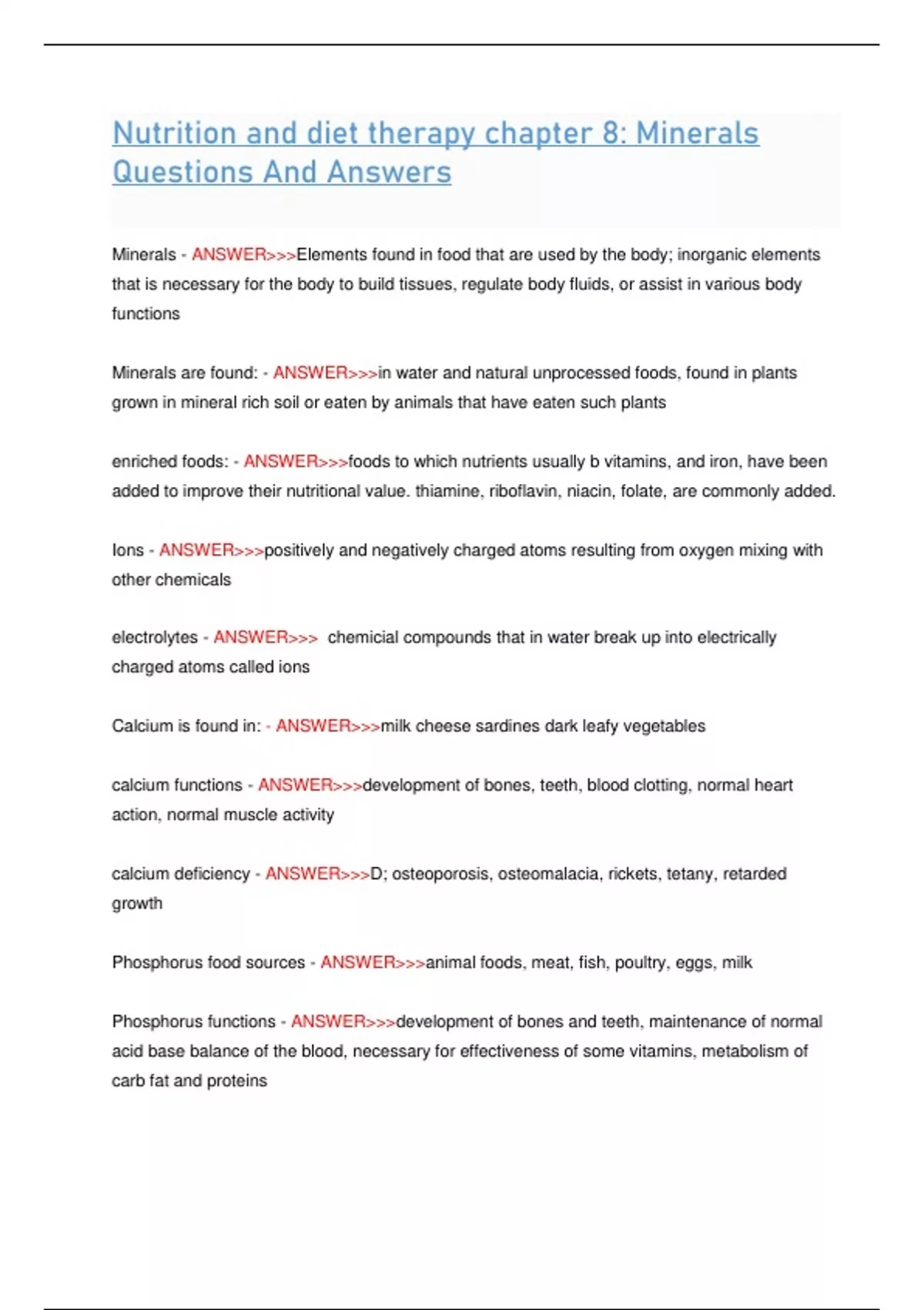 Nutrition and diet therapy chapter 8: Minerals Questions And Answers Nutrition and diet therapy chapter 8: Minerals Questions And Answers