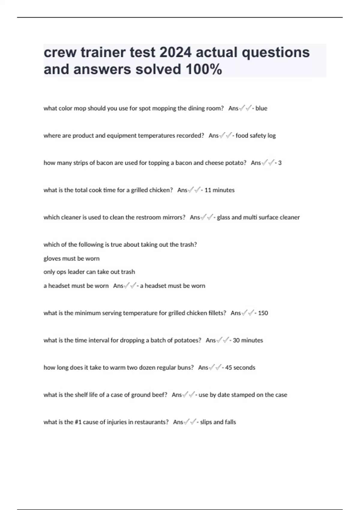 crew trainer test 2024 actual questions and answer
