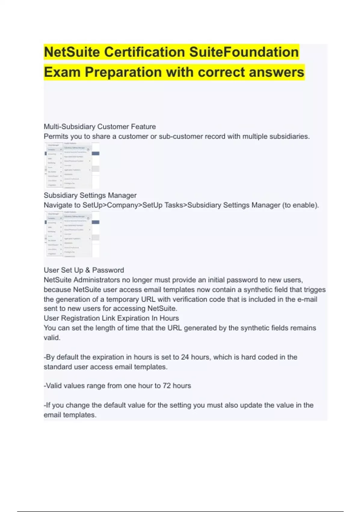 NetSuite Certification SuiteFoundation Exam Preparation with correct answers