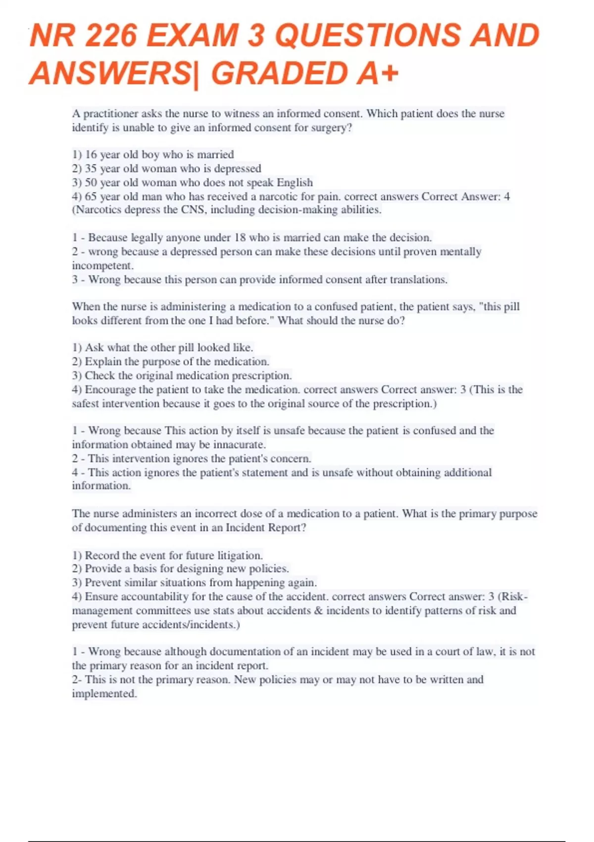 NR 226 EXAM 3 QUESTIONS WITH 100% CORRECT ANSWERS