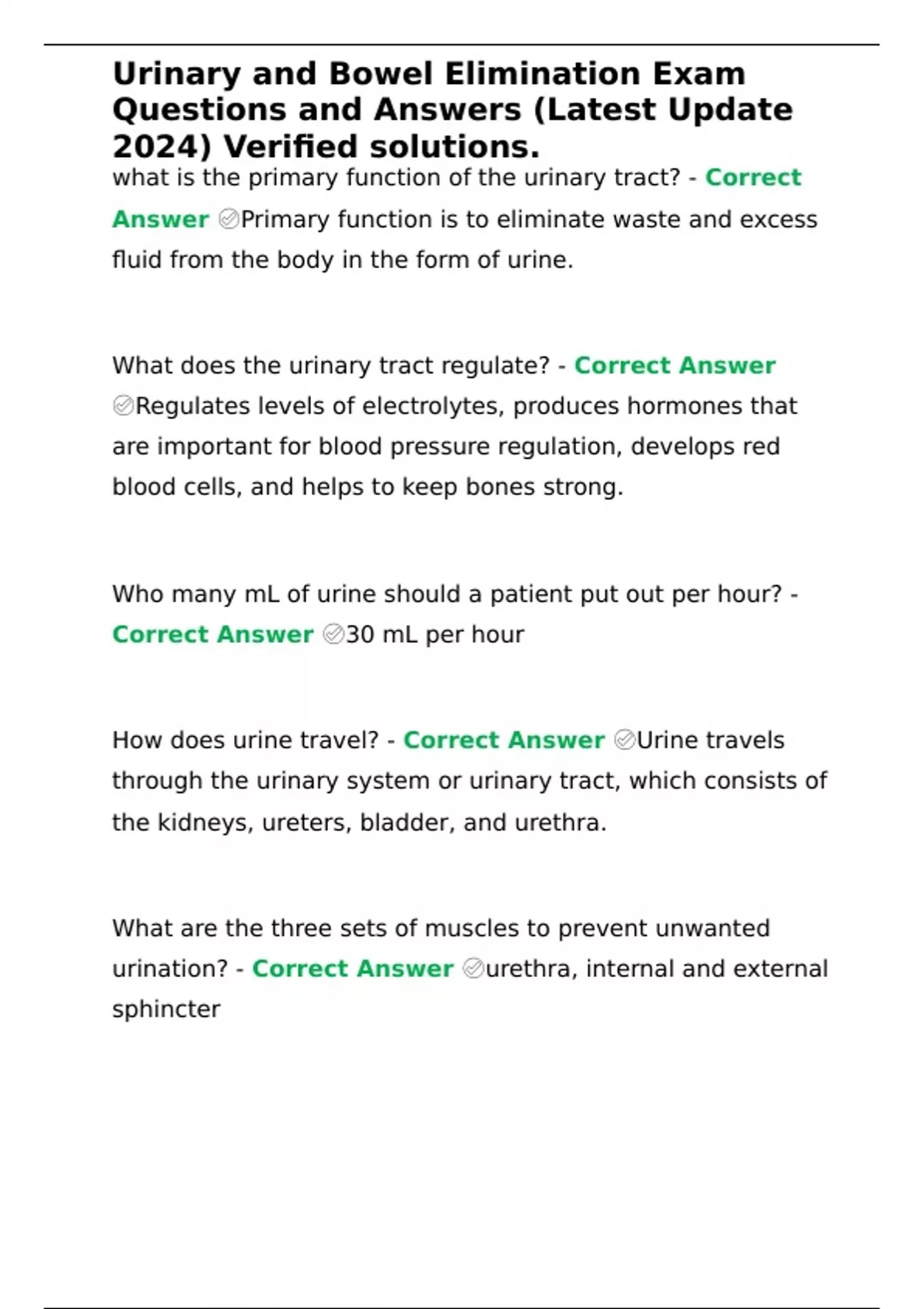 Urinary and Bowel Elimination Exam Questions and Answers (Latest Update 2024) Verified solutions.