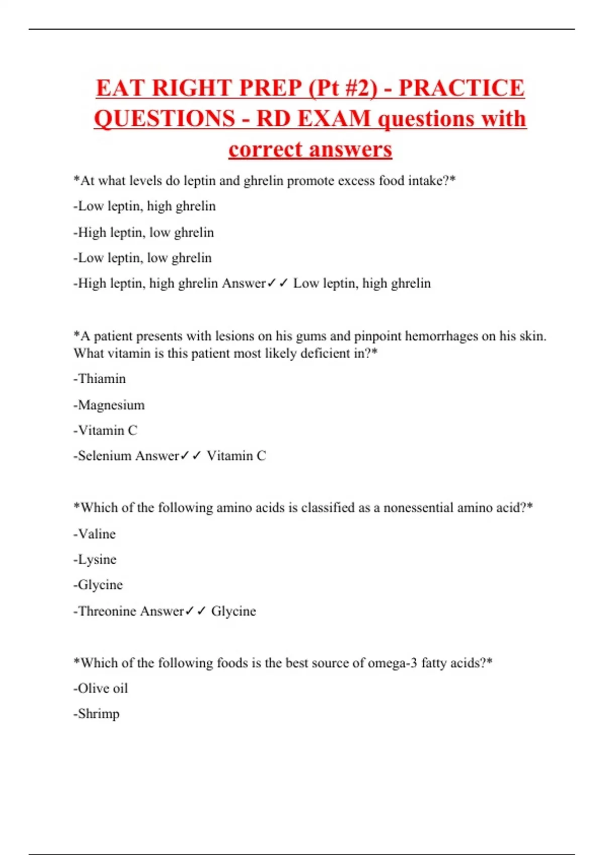 EAT RIGHT PREP (Pt #2) - PRACTICE QUESTIONS - RD EXAM questions with correct answers