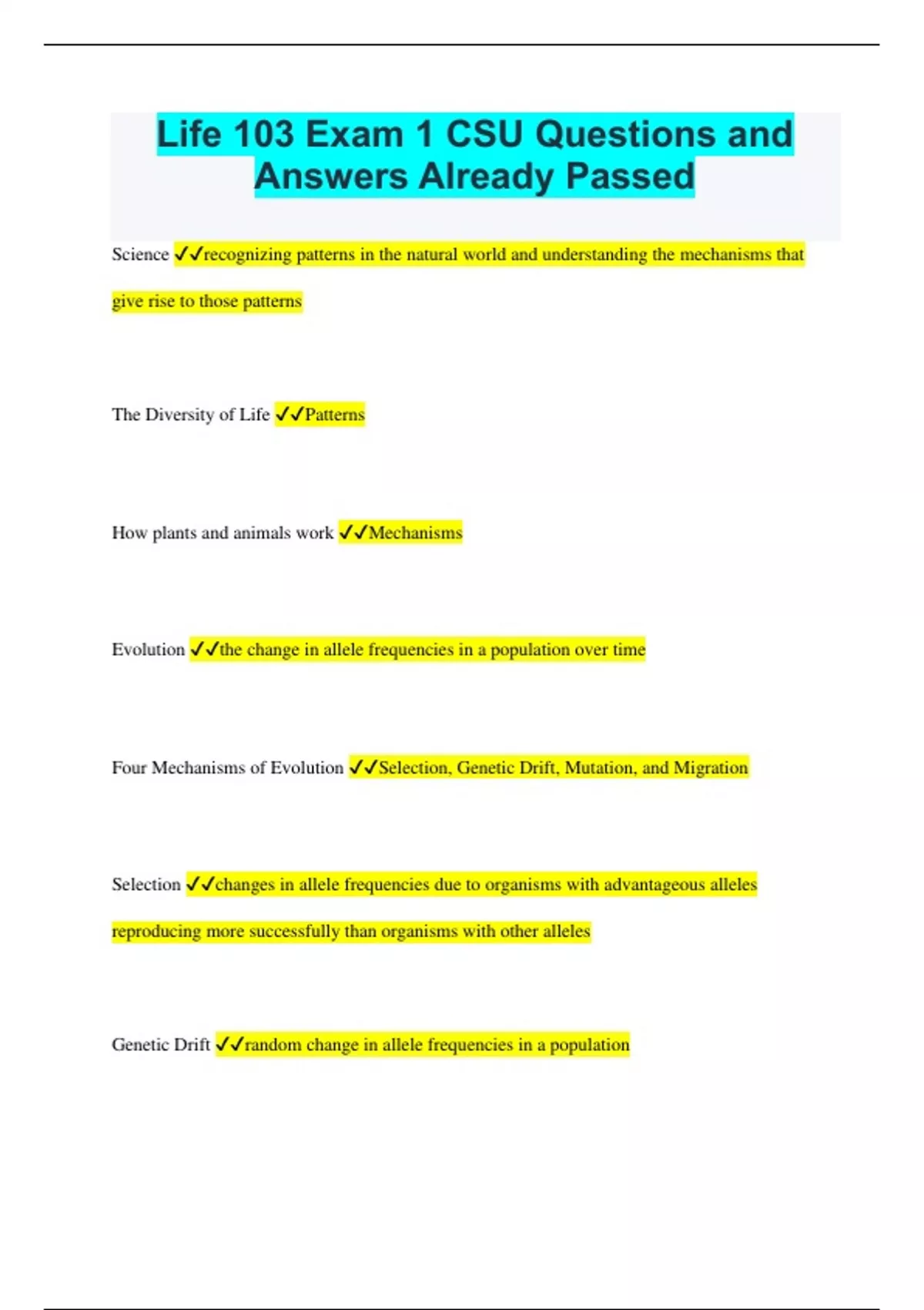 Life 103 Exam 1 CSU Questions and Answers Already Passed