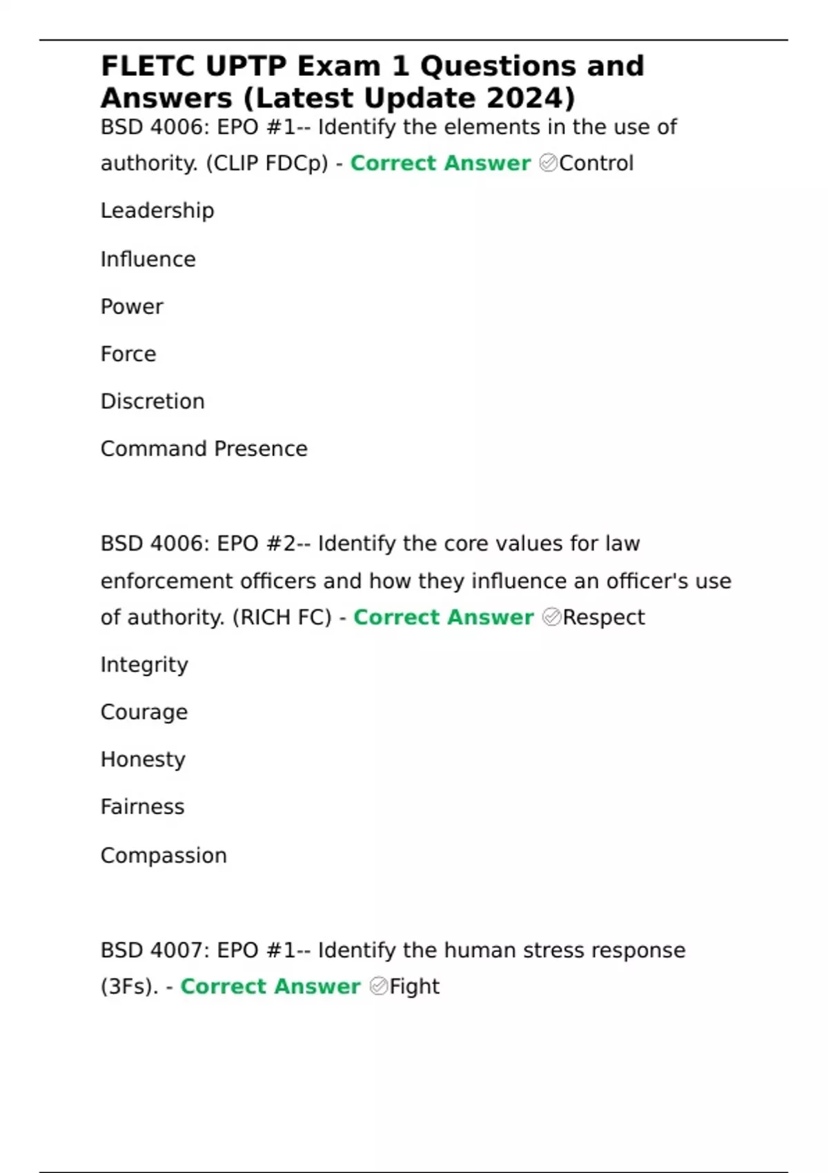 FLETC UPTP Exam 1 Questions and Answers (Latest Update 2024)