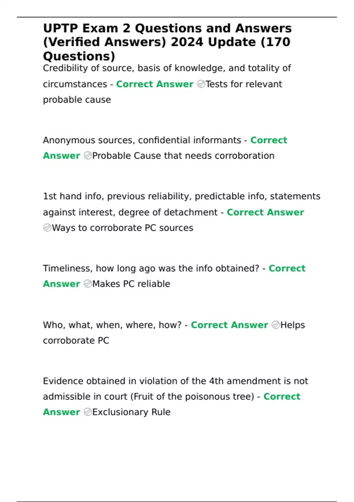 UPTP Exam 2 Questions and Answers (Verified Answers) 2024 Update (170 Questions)