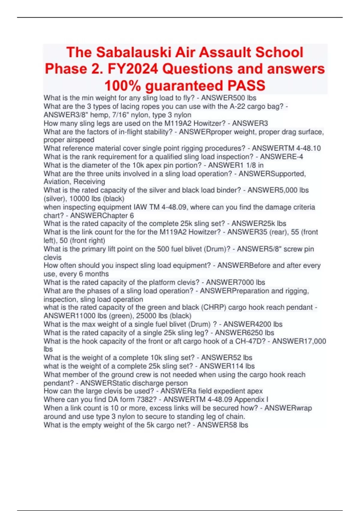 The Sabalauski Air Assault School Phase 2. FY2024 Questions and answers 100% guaranteed PASS