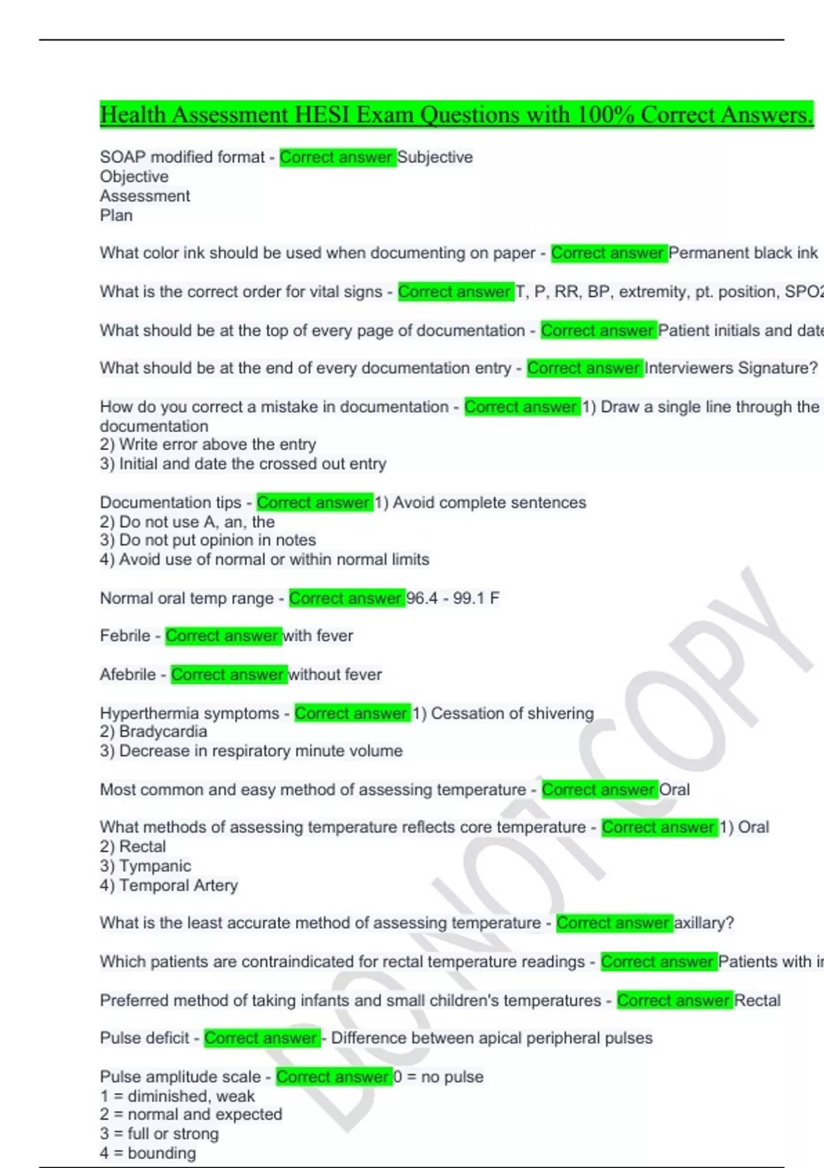 Health Assessment HESI Exam Questions with 100% Correct Answers.