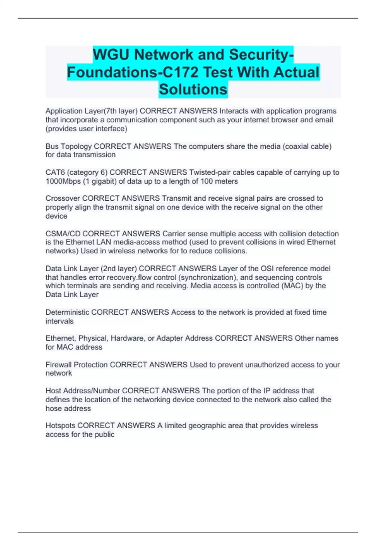 WGU Network and Security-Foundations-C172 Test With Actual Solutions