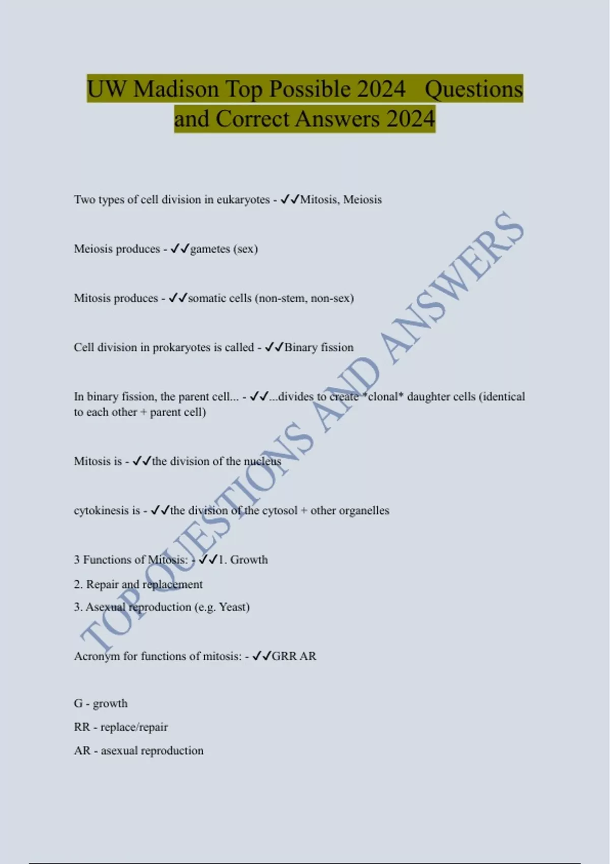 UW Madison Top Possible 2024 Questions and Correct Answers 2024