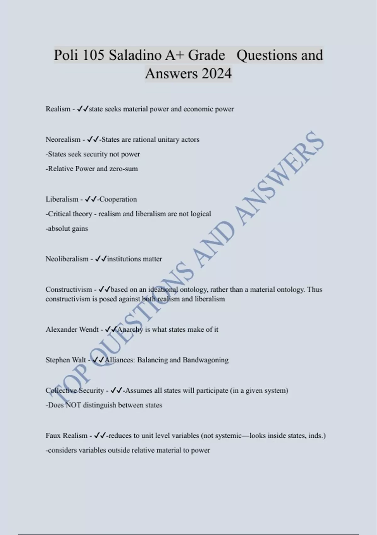 Poli 105 Saladino A+ Grade Questions and Answers 2024
