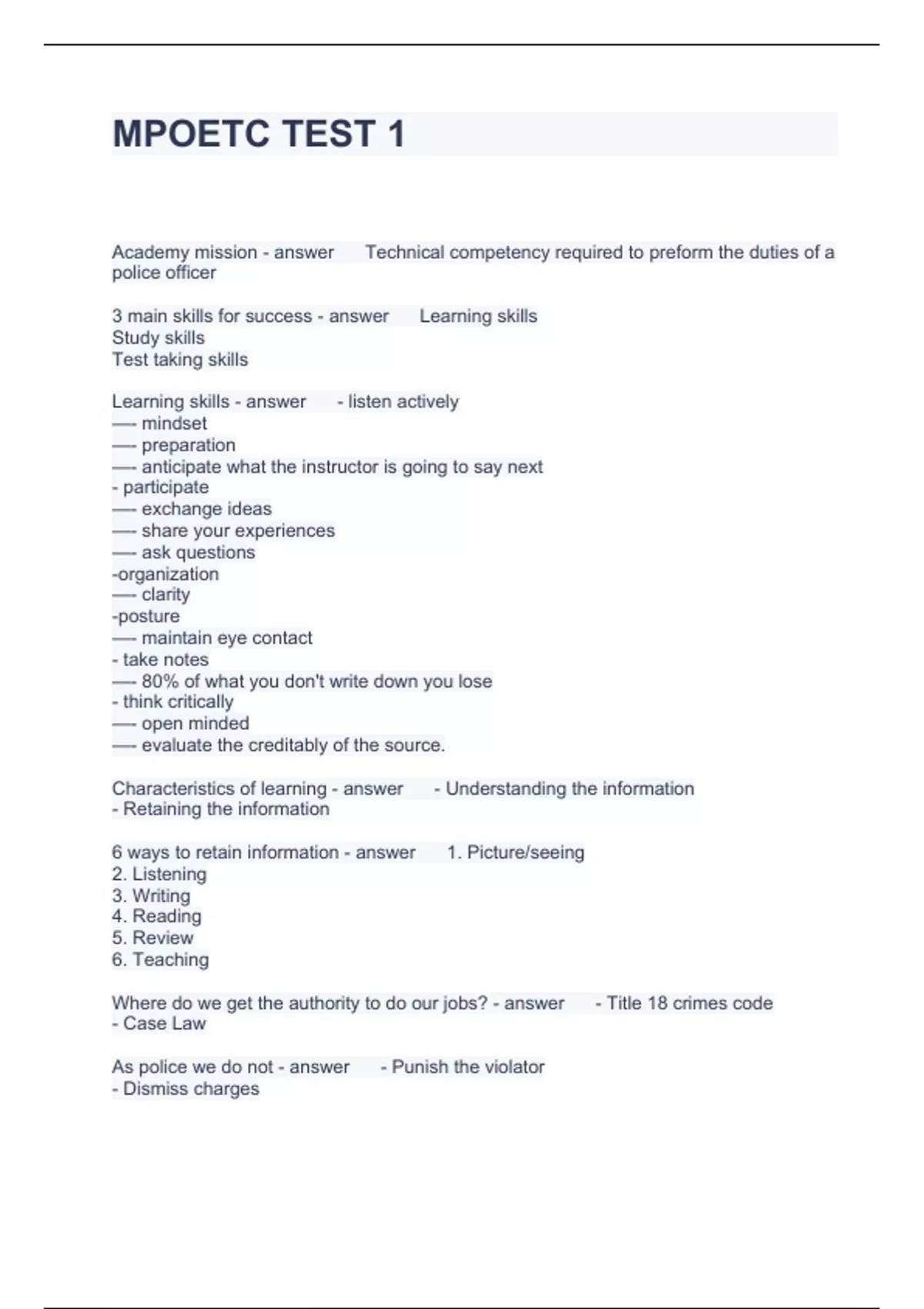 MPOETC TEST 1 QUESTIONS AND ANSWERS FULLY SOLVED