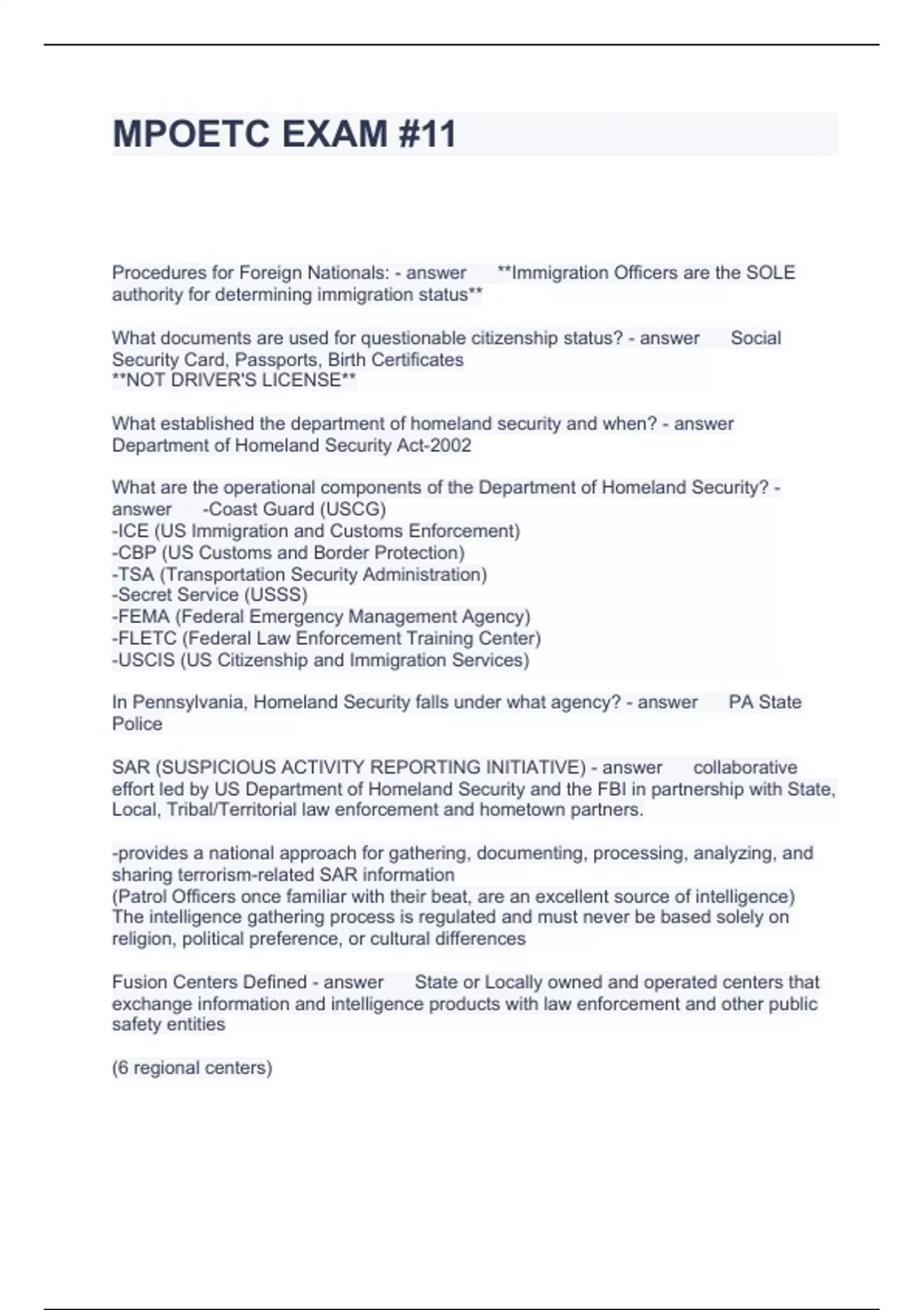 Exam of 7 pages for the course MPOETC at MPOETC (MPOETC EXAM #11)