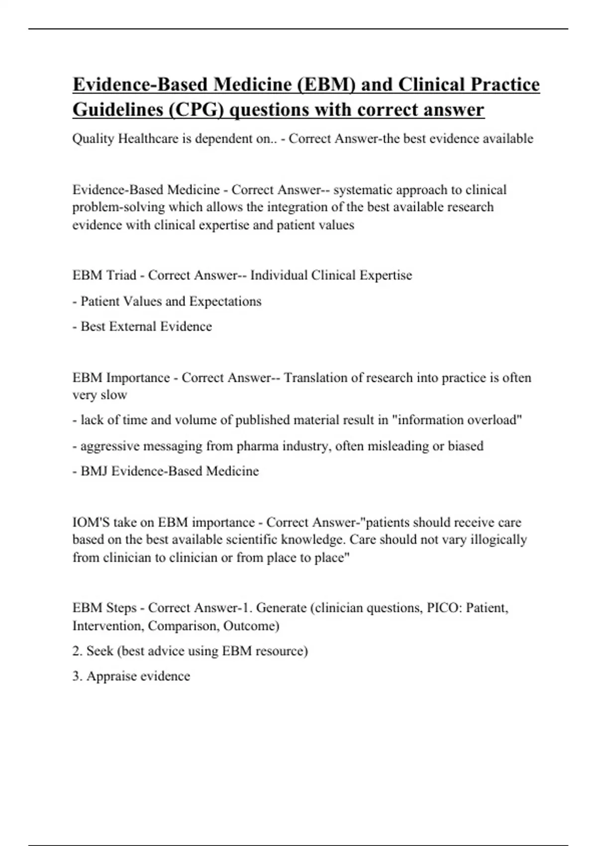 Evidence-Based Medicine (EBM) and Clinical Practice Guidelines (CPG) questions with correct answer