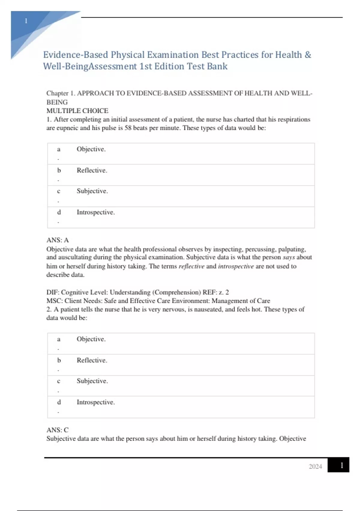 Evidence-Based Physical Examination Best Practices for Health & Well-Being Assessment 1st Edition Test Bank ALL CHAPTERS