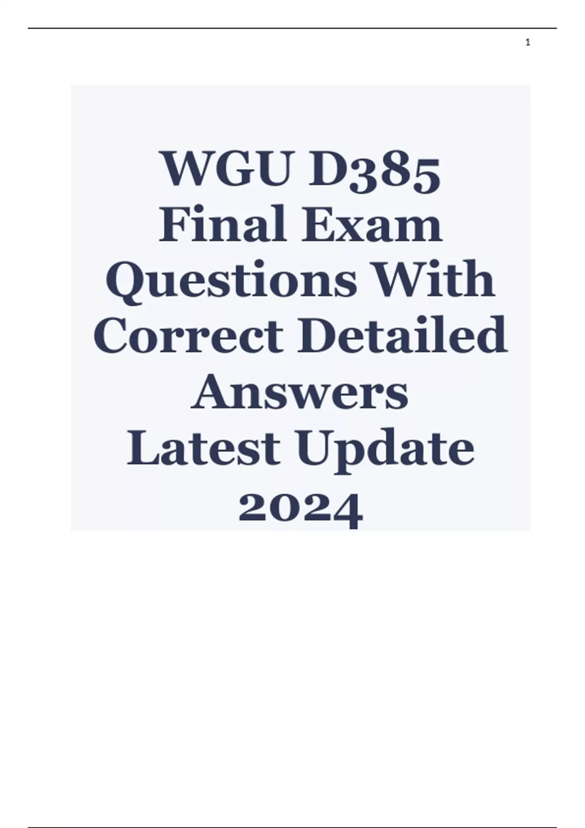 WGU D385 Final Exam Questions With Correct Detailed Answers Latest Update 2024