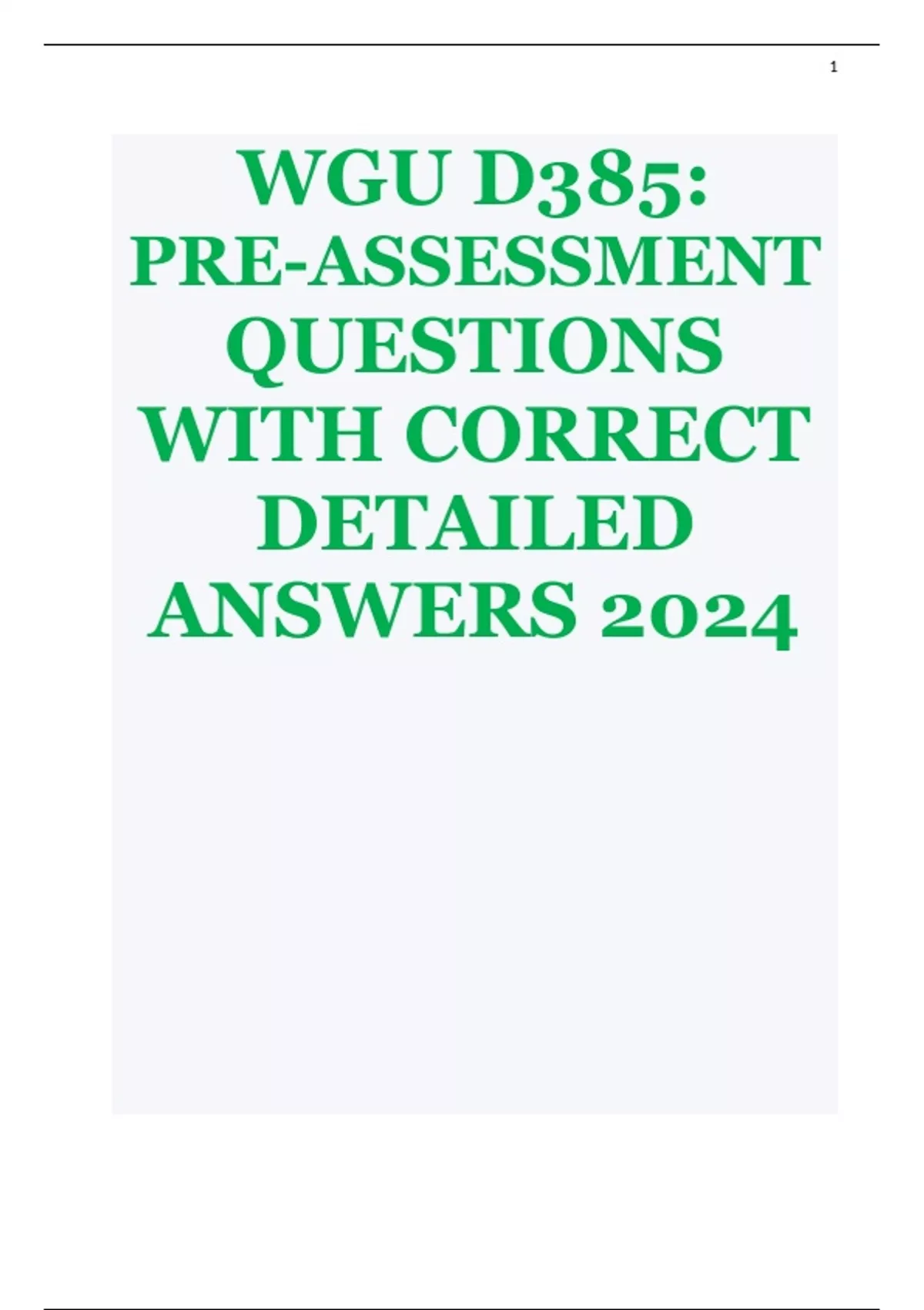 WGU D385 PRE-ASSESSMENT QUESTIONS WITH CORRECT DETAILED ANSWERS 2024