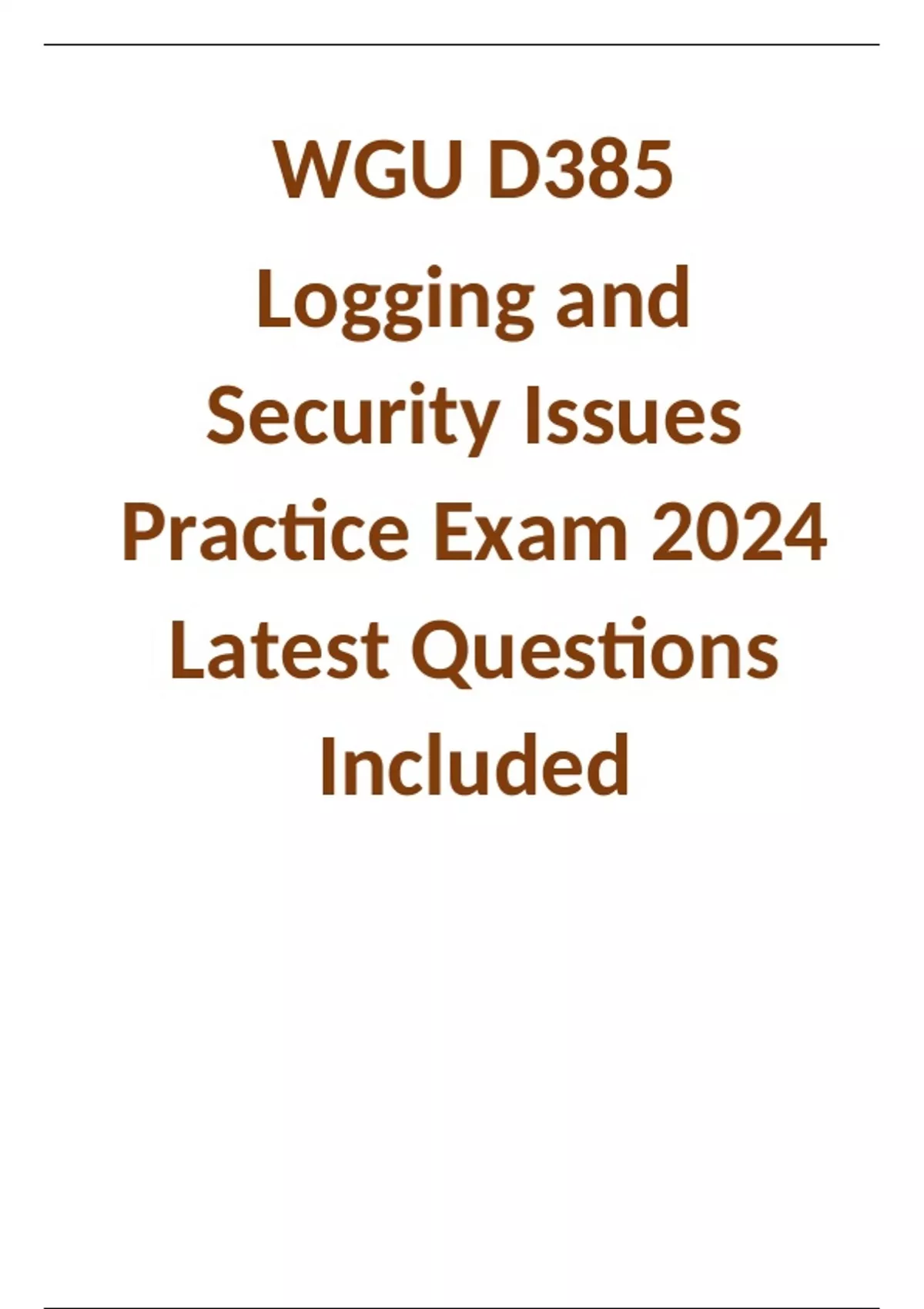 WGU D385 Logging and Security Issues Practice Exam 2024 Latest Questions Included