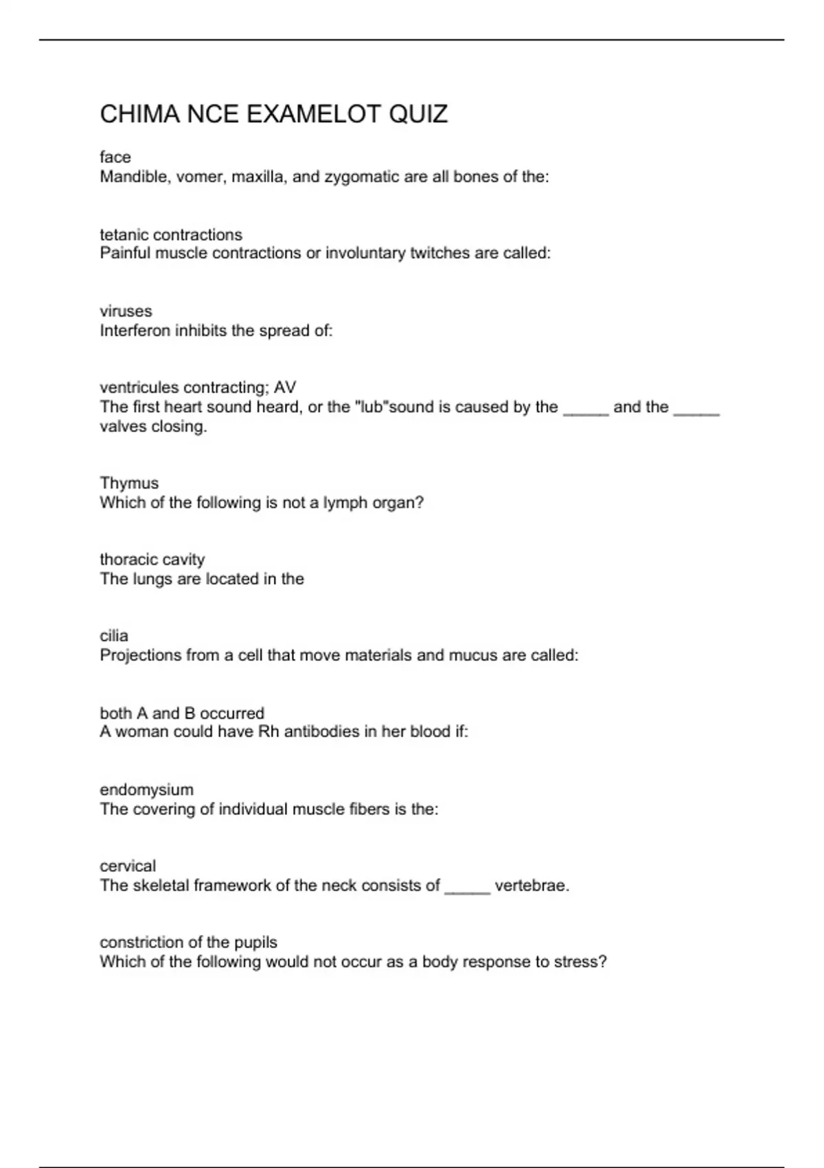 CHIMA NCE EXAMELOT QUIZ