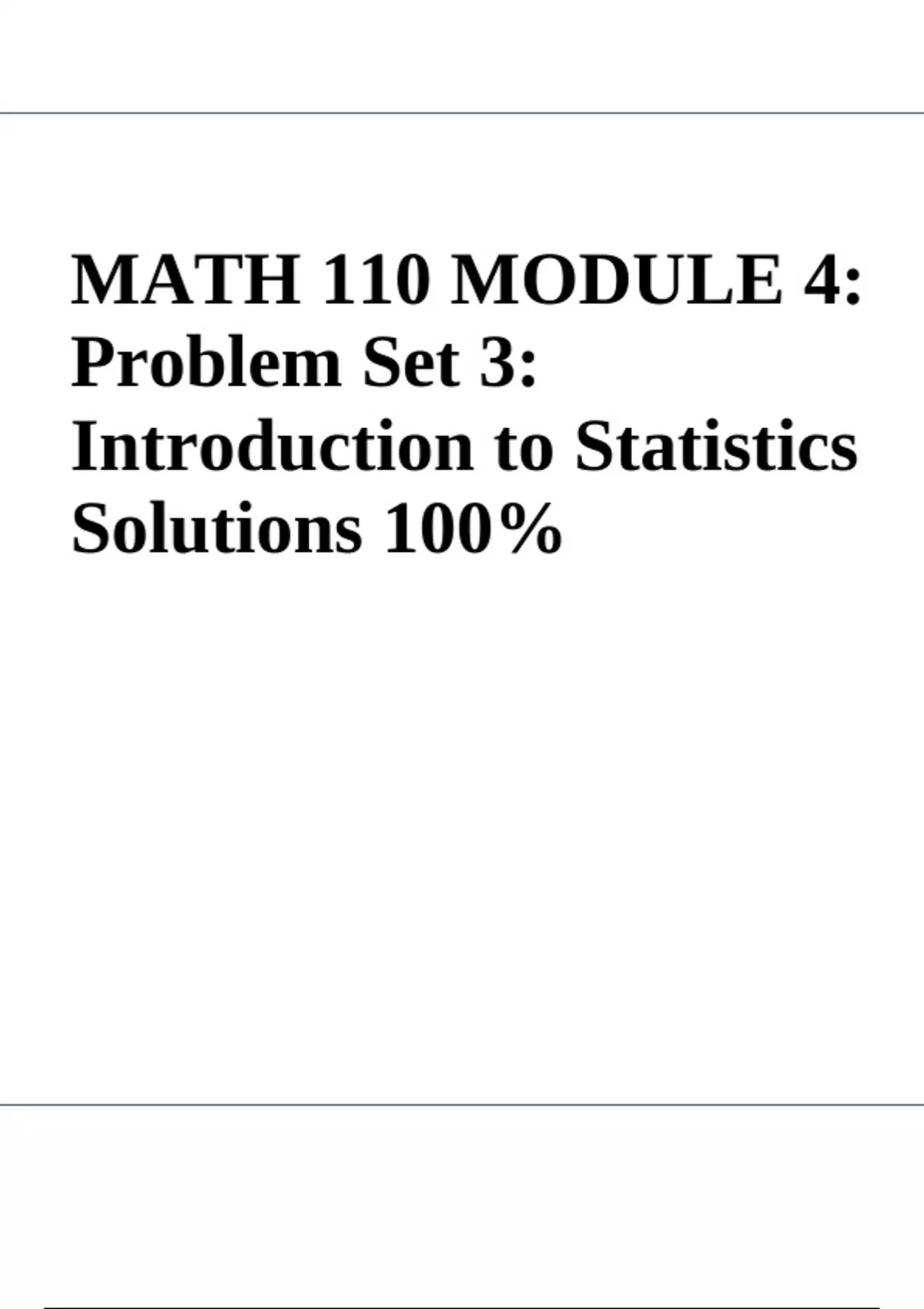 MATH 110 MODULE 4: Problem Set 3: Introduction to Statistics Solutions 100%