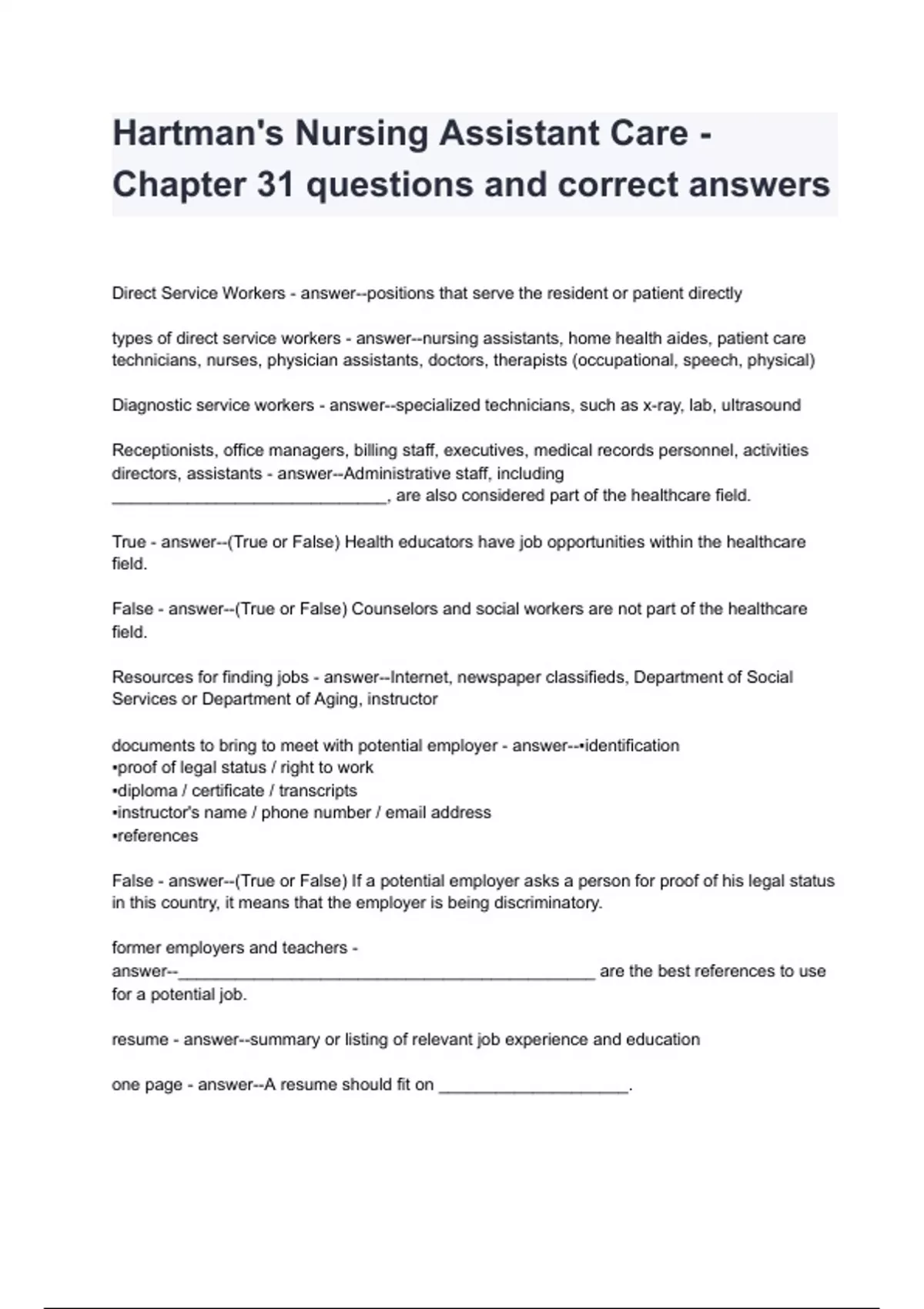 Hartman's Nursing Assistant Care - Chapter 31 questions and correct answers