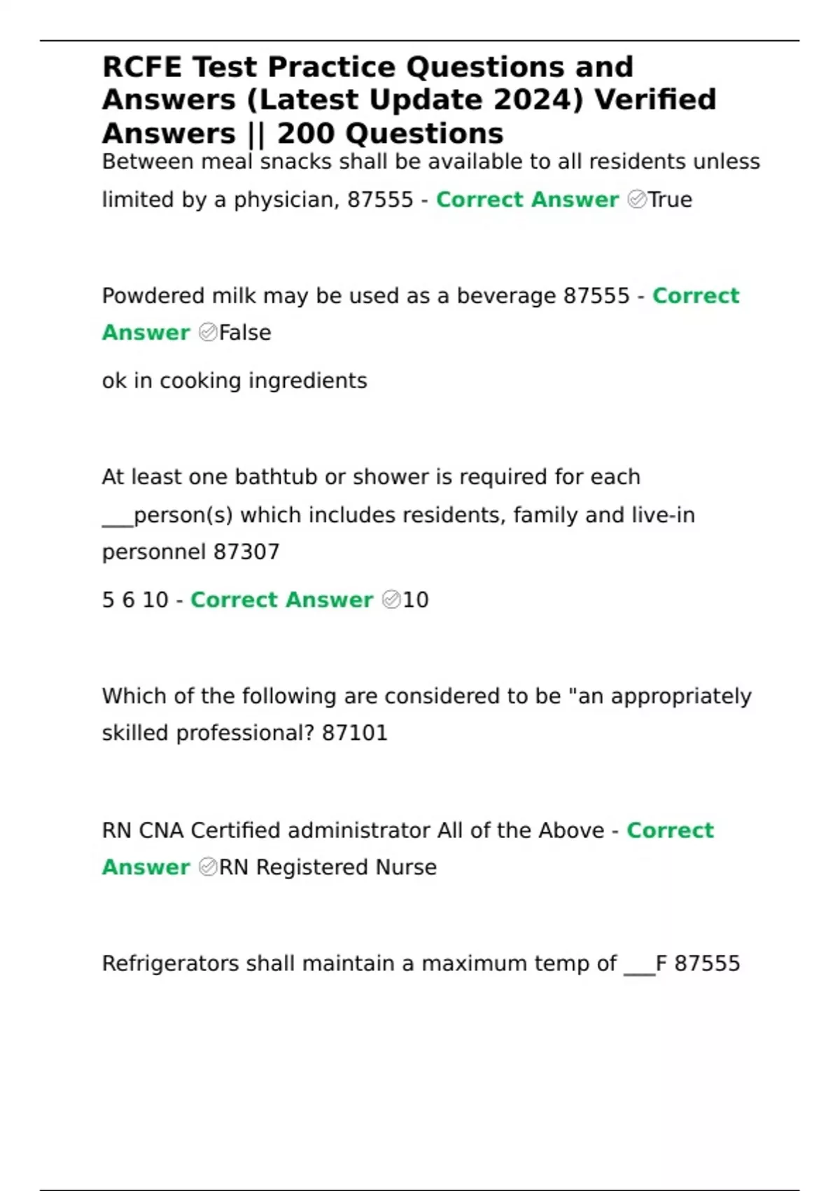RCFE Test Practice Questions and Answers (Latest Update 2024) Verified Answers || 200 Questions