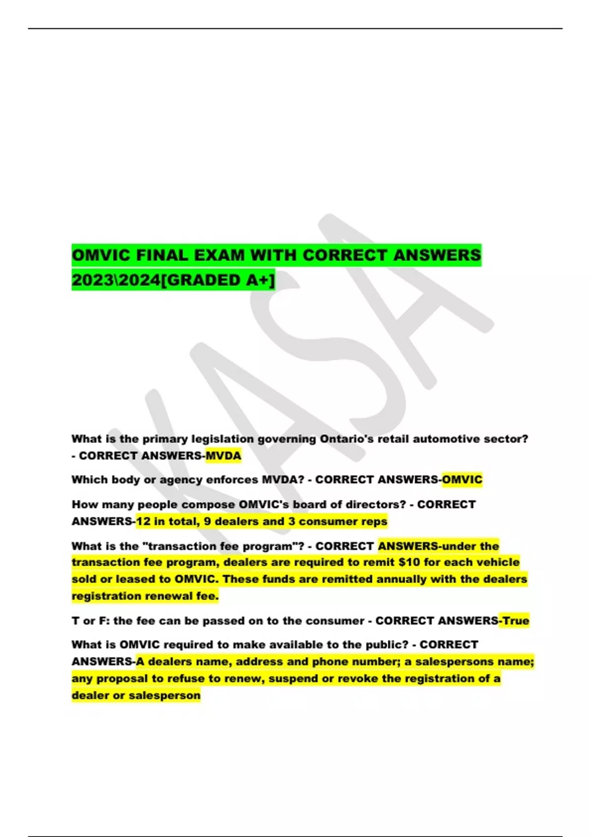 - CORRECT ANSWERS-MVDA