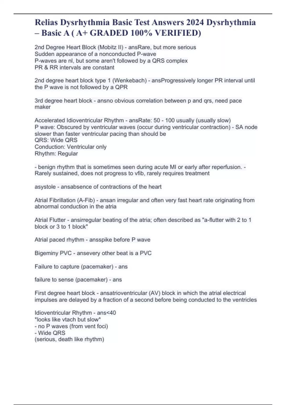 Relias Dysrhythmia Basic Test Answers 2024 Dysrhythmia – Basic A ( A+ GRADED 100% VERIFIED)