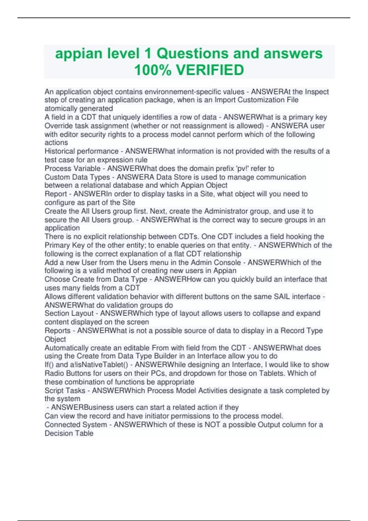 appian level 1 Questions and answers 100% VERIFIED