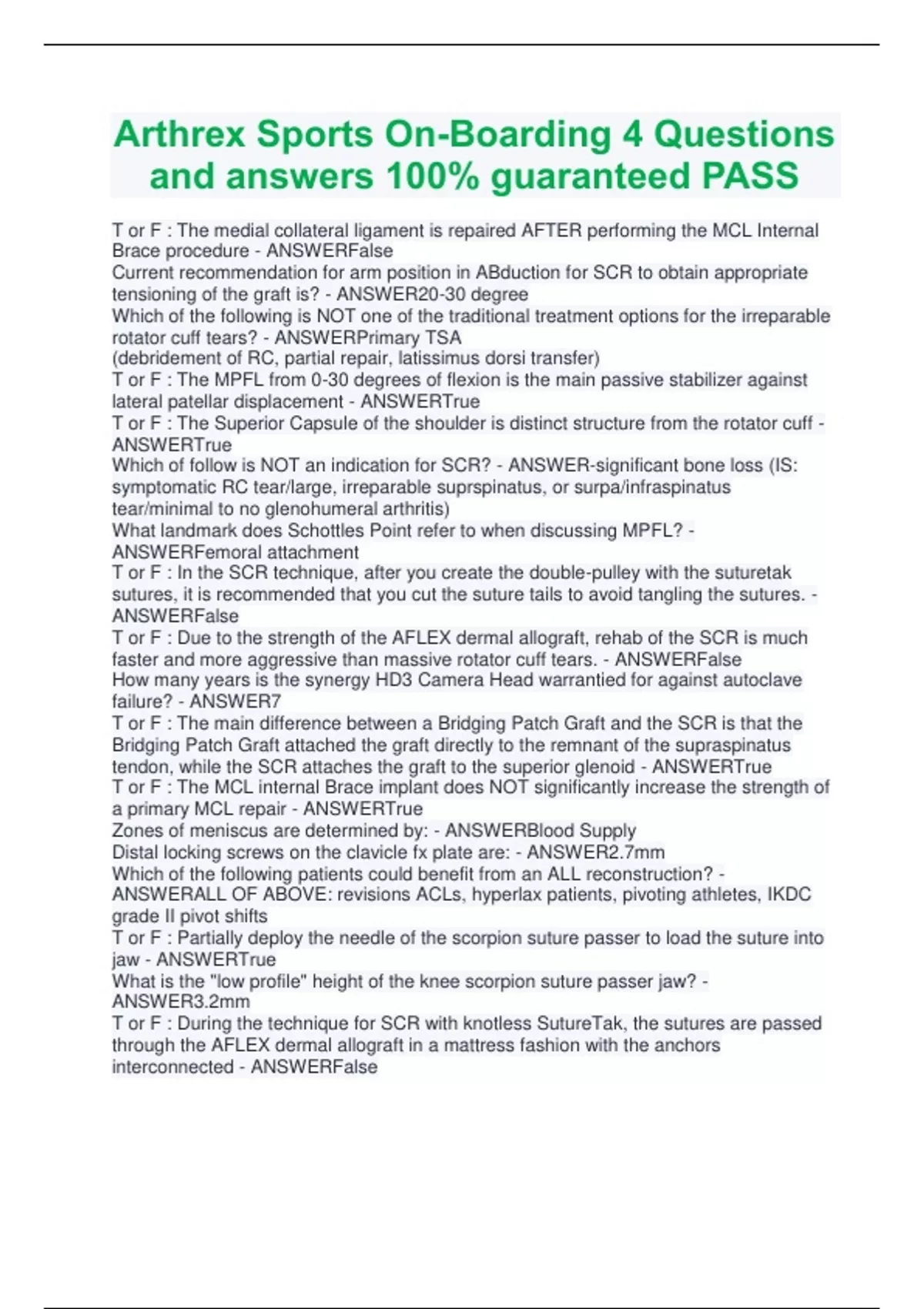 Arthrex Sports On-Boarding 4 Questions and answers 100% guaranteed PASS