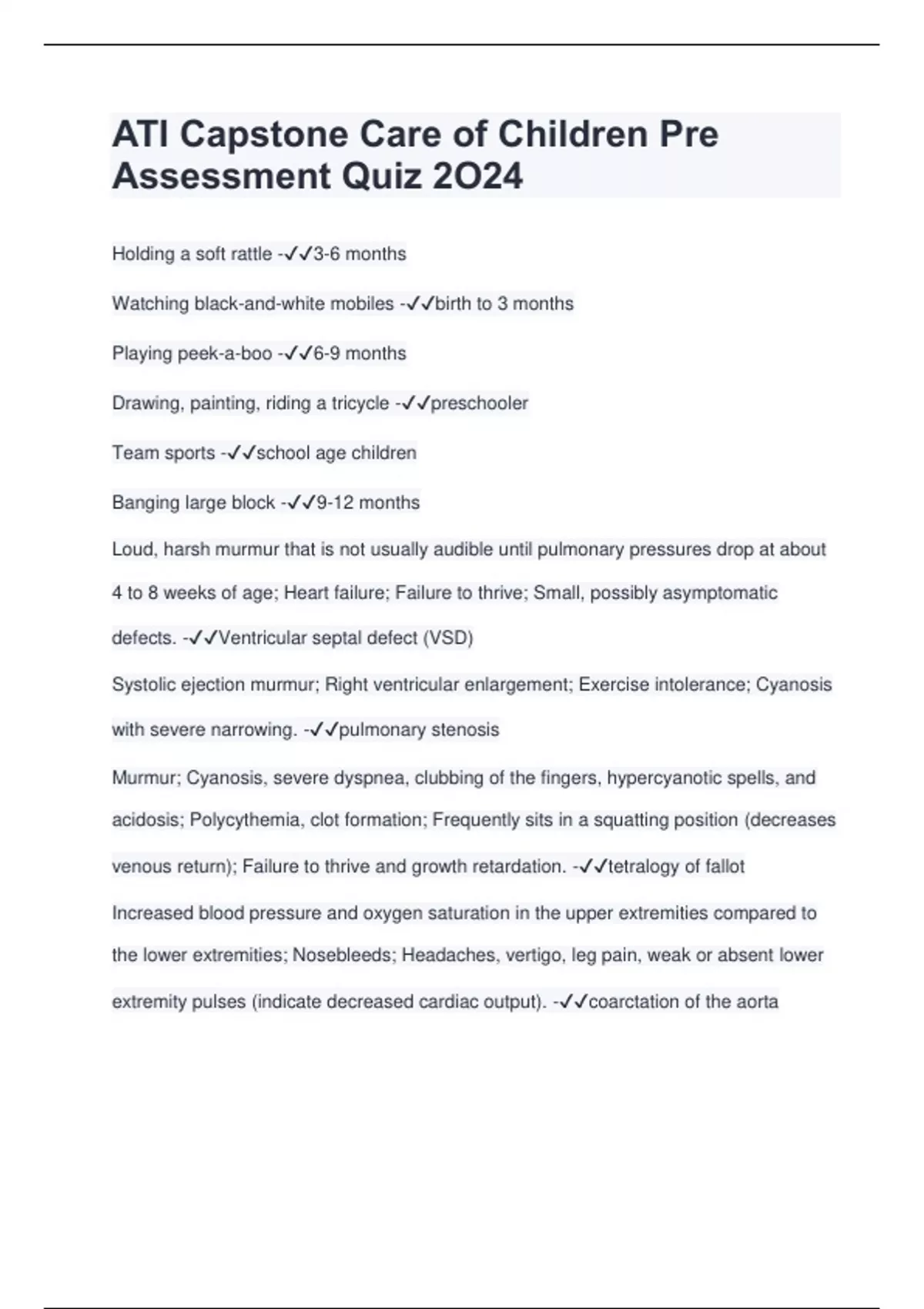 ATI Capstone Care of Children Pre Assessment Quiz 2O24