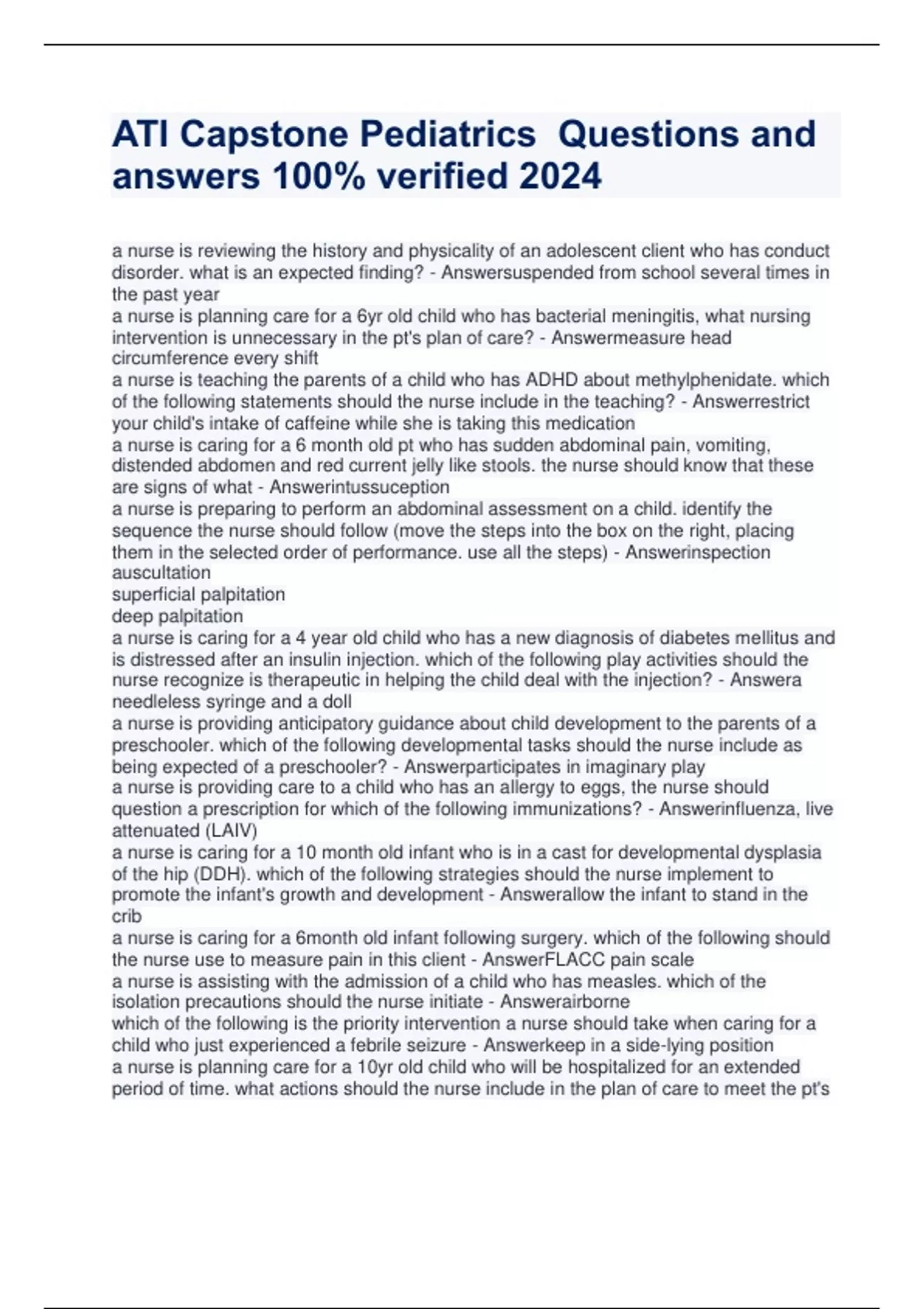 ATI Capstone Pediatrics Questions and answers 100% verified 2024