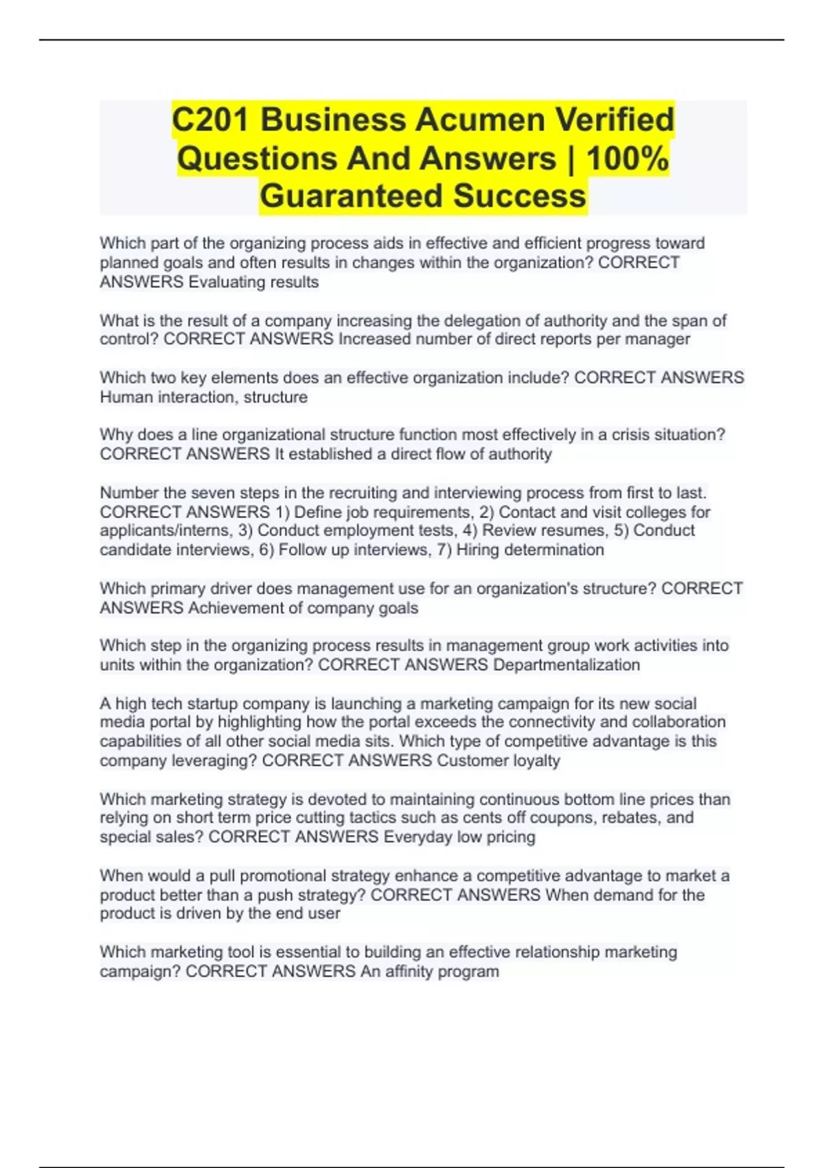 C201 Business Acumen Verified Questions And Answers | 100% Guaranteed Success