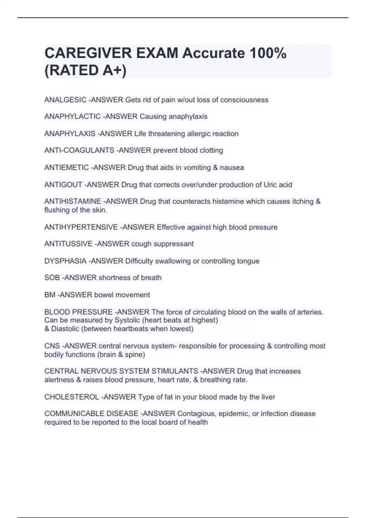 CAREGIVER EXAM Accurate 100%(RATED A+)