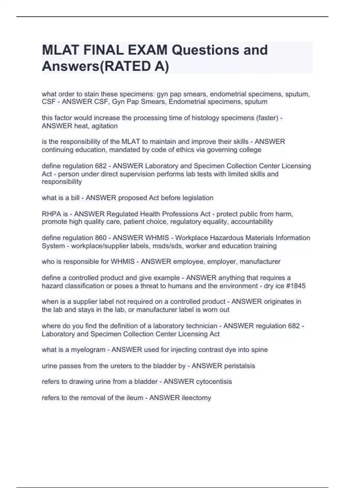 MLAT FINAL EXAM Questions and Answers(RATED A)