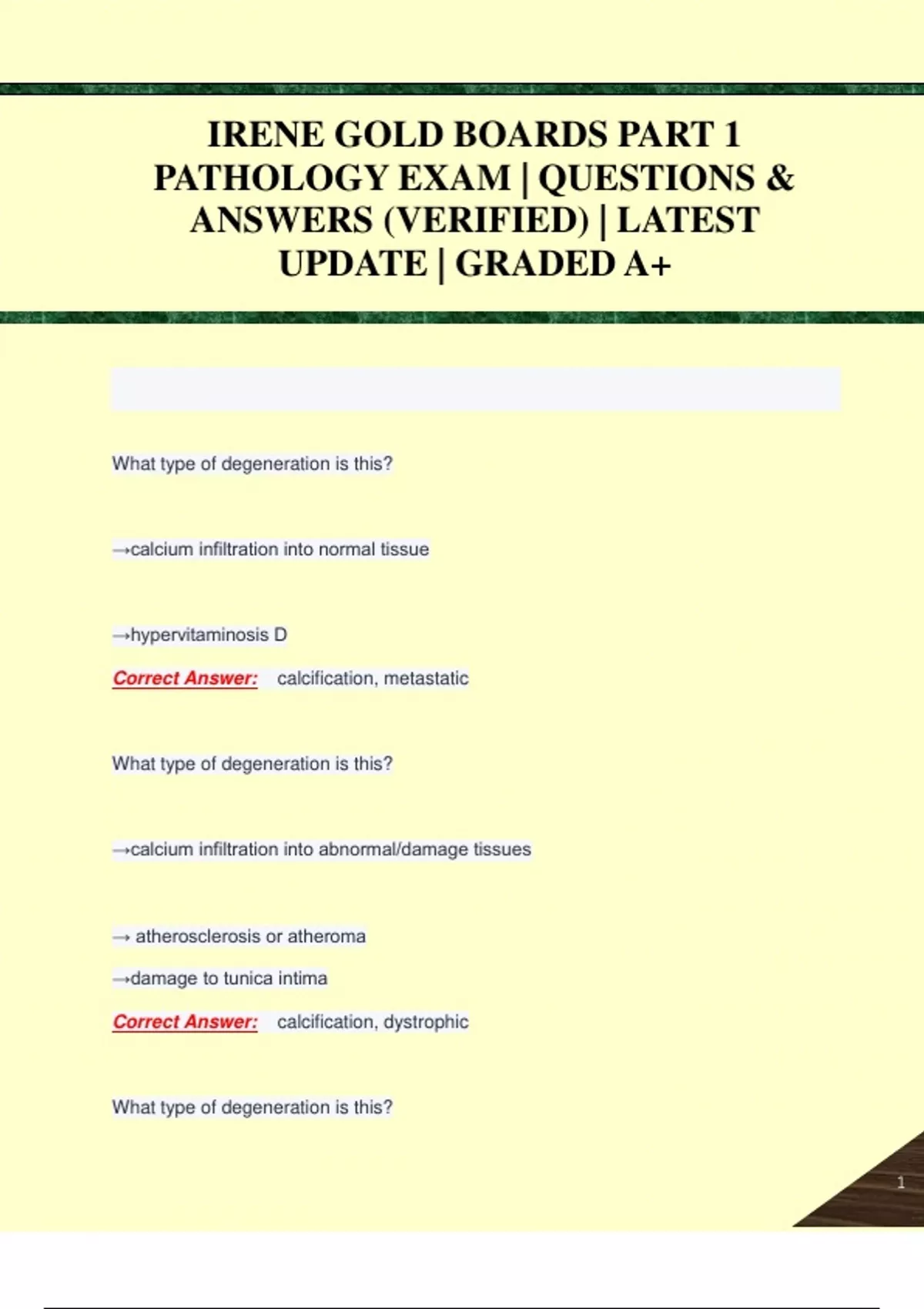 IRENE GOLD BOARDS PART 1 PATHOLOGY EXAM | QUESTIONS & ANSWERS (VERIFIED) | LATEST UPDATE | GRADED A+