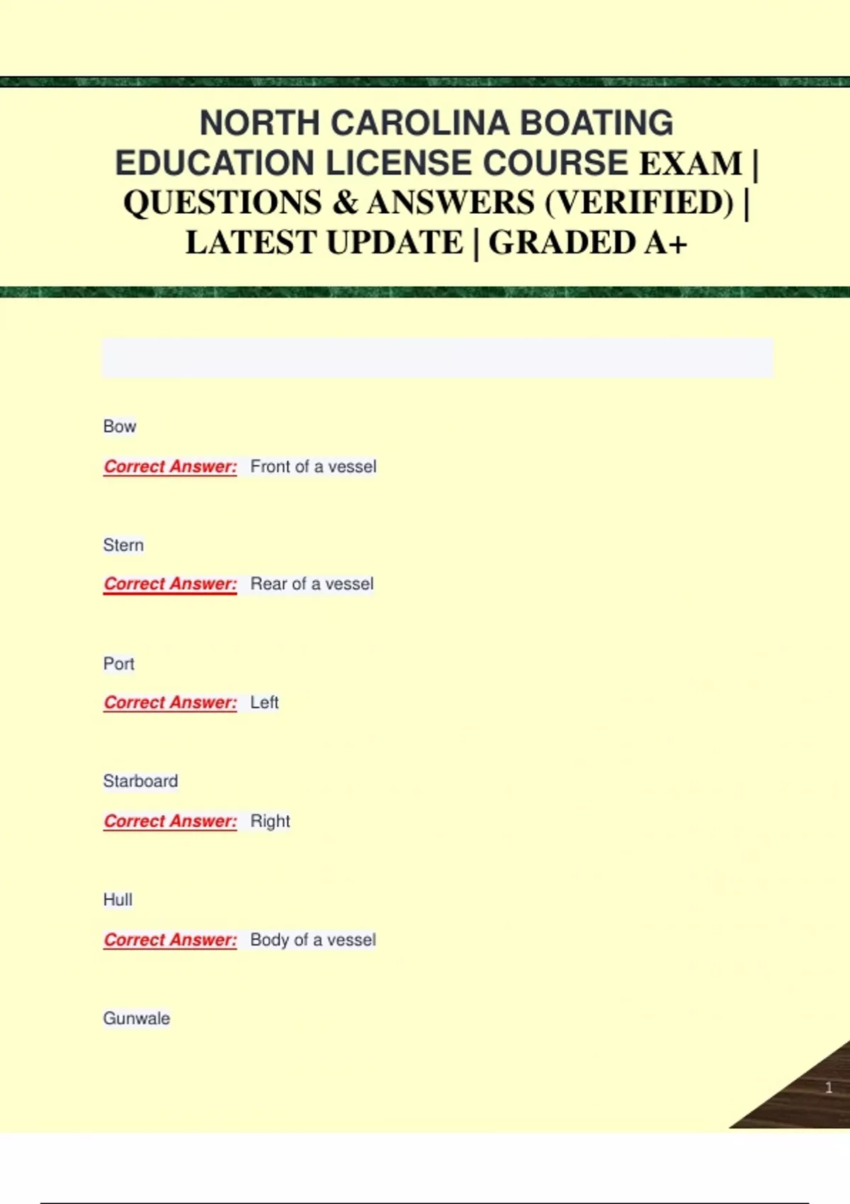NORTH CAROLINA BOATING EDUCATION LICENSE COURSE EXAM | QUESTIONS & ANSWERS (VERIFIED) | LATEST UPDATE | GRADED A+