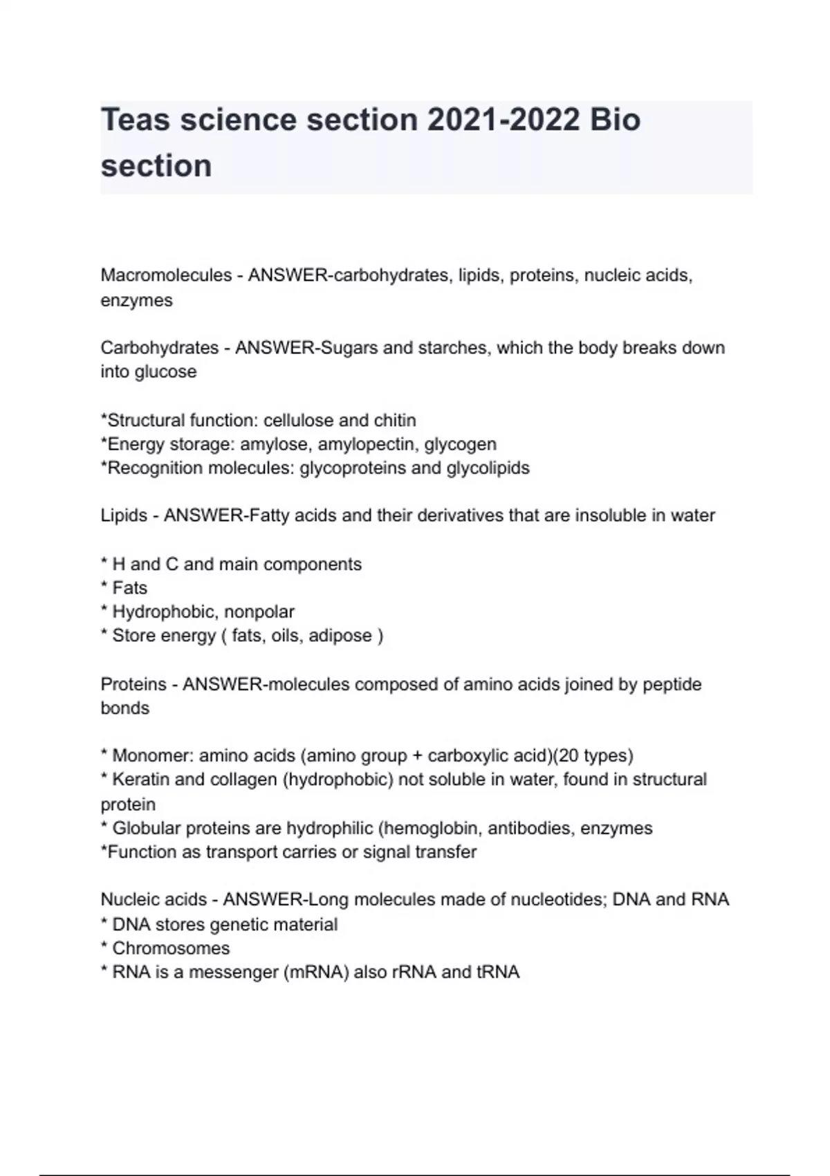 Teas Science Section 2021-2022 Bio Section