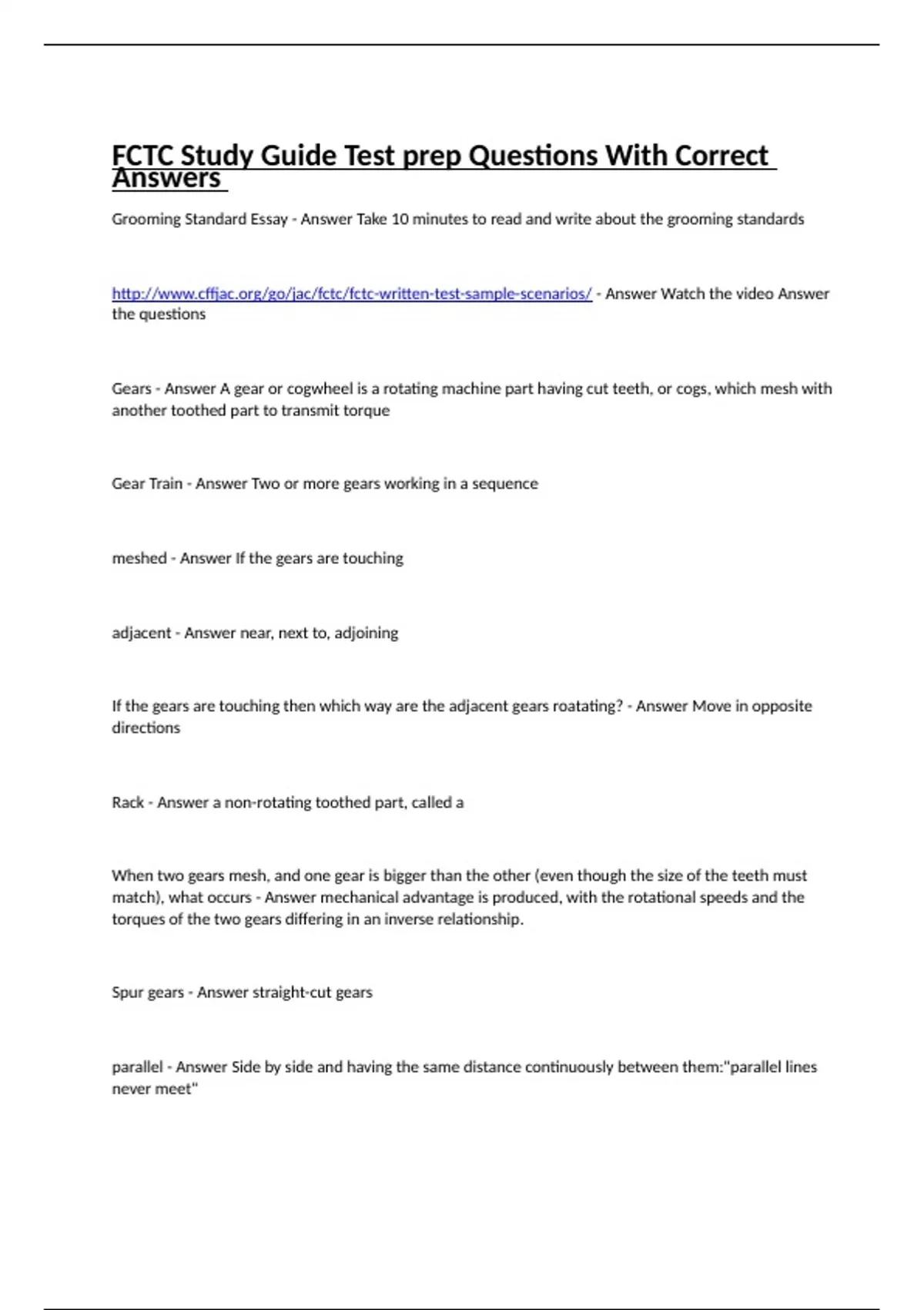 FCTC Study Guide Test prep Questions With Correct Answers
