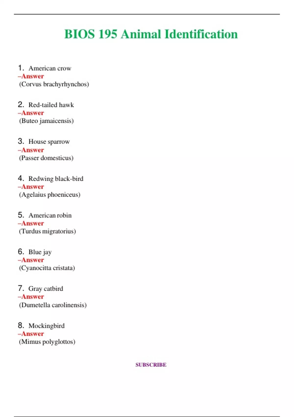BIOS 195 Animal Identification (Latest 2024 / 2025) Questions and Answers (Verified Answers)